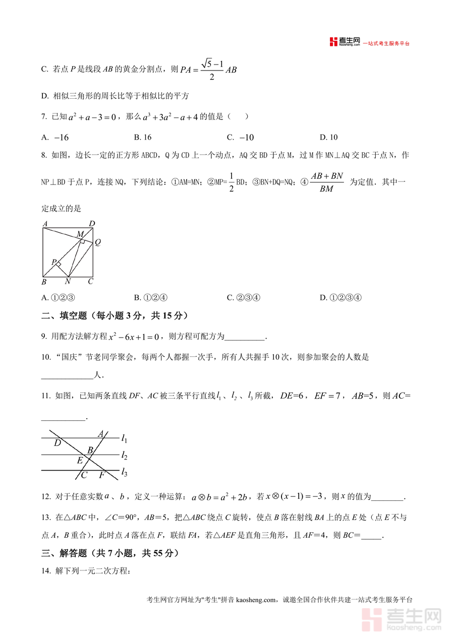 本资料主要适用于南外滨海学校九年级学生,同时也适合其他同类学校九年级学生作为数学期中考试的备考参考。它不仅是应对期中考试的必要工具,其系统性和针对性使其具有不可替代性,能够帮助学生巩固基础知识,培养逻辑思维能力,为后续的中考复习奠定坚实基础,具有长期的学习价值和应用意义。