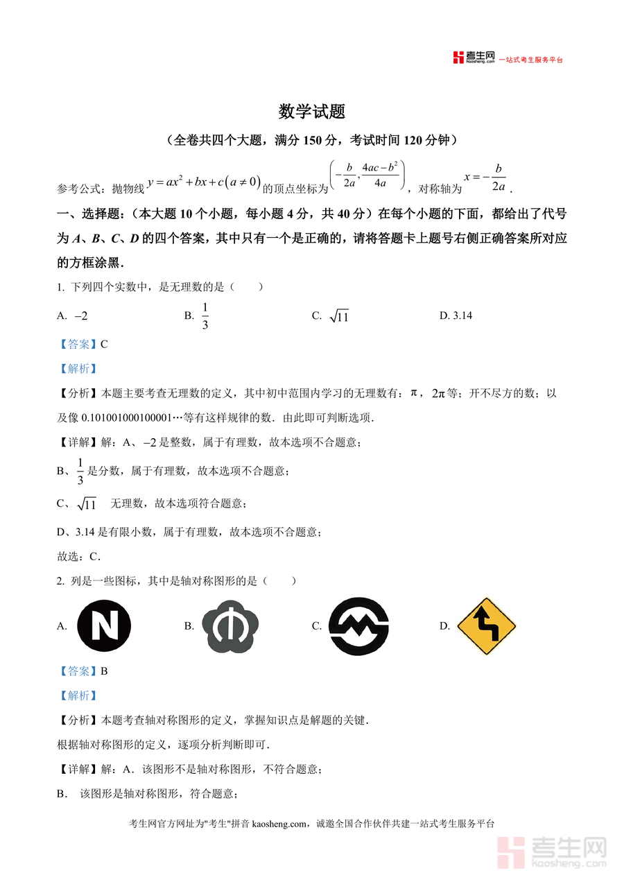《精品解析:重庆市江北区重庆八中宏帆中学校2025-2026学年九年级上学期11月期中数学试题(解析版).docx》是一份聚焦九年级数学期中备考需求、贴合本地重点校命题特色的高质量真题解析类备考资料。资料涵盖全卷四大题(选择题、填空题、解答题等)共150分内容,每道题均配备精准答案与详尽解析:不仅明确考点定位(如无理数定义、轴对称图形判定、二次函数对称性等),还通过步骤化推导呈现解题思路——例如选择题第7题结合抛物线对称轴与函数增减性分析函数值大小,填空题第13题利用顶点坐标求对称轴进而确定另一交点位置,解析逻辑严谨且贴合该校教学风格。