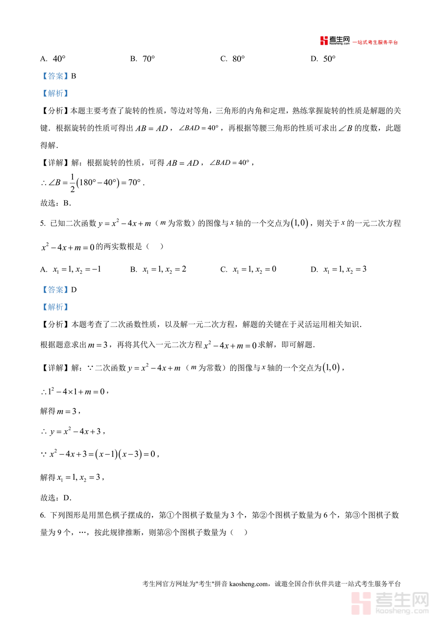 该资料核心用途为辅助九年级学生巩固期中数学核心考点(如二次函数性质、旋转几何应用)、提升应试能力,并为教师提供标准化的真题解析参考。使用场景覆盖课堂同步复习(针对联考高频考点进行专题讲解)、自主刷题后的错题订正(通过对比解析修正思路偏差)、考前冲刺训练(利用真题解析总结命题趋势)。用户价值体现在:通过真题解析掌握同类题型解题范式(如二次函数图象平移规律、一元二次方程根判别式应用);备考优势在于依托金砖五校联考权威性与代表性,试题难度贴合区域期中测评标准,能帮助学生精准定位知识盲区,高效提升期中备考效率。