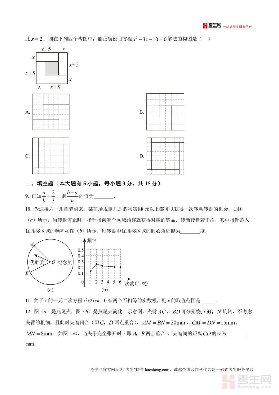 这份资料核心用途在于辅助九年级学生进行期中复习阶段的自我检测与知识巩固,适用场景包括课堂同步训练、课后自主刷题及考前模拟测试;同时也为初中数学教师提供了贴合盐田区考情的命题参考范本。对学生而言,使用该试卷可熟悉本地期中考试的题型结构与难度梯度,精准发现知识薄弱环节,提升应试能力;教师则可通过分析试卷考点分布规律,优化教学重点与复习计划,增强教学针对性。此外,原卷版呈现形式能帮助学生提前适应真实考试节奏,降低考场陌生感,提升答题效率。