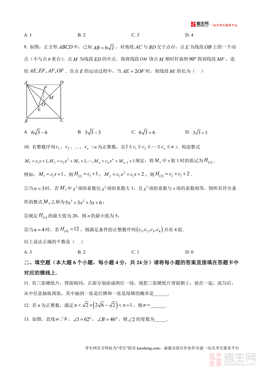 本资料适用于重庆市及周边地区九年级数学学生、初中数学教师及关注中考备考家长群体。作为重点中学官方发布原卷版资料,其不可替代性在于提供真实考试场景下试题原貌与命题思路参考;长期价值体现在可作为中考复习阶段回顾基础知识点、强化题型训练的重要资源。无论是学生备考还是教师教学规划,该试卷均能提供专业详实支持,助力提升数学学习效果与应试水平。