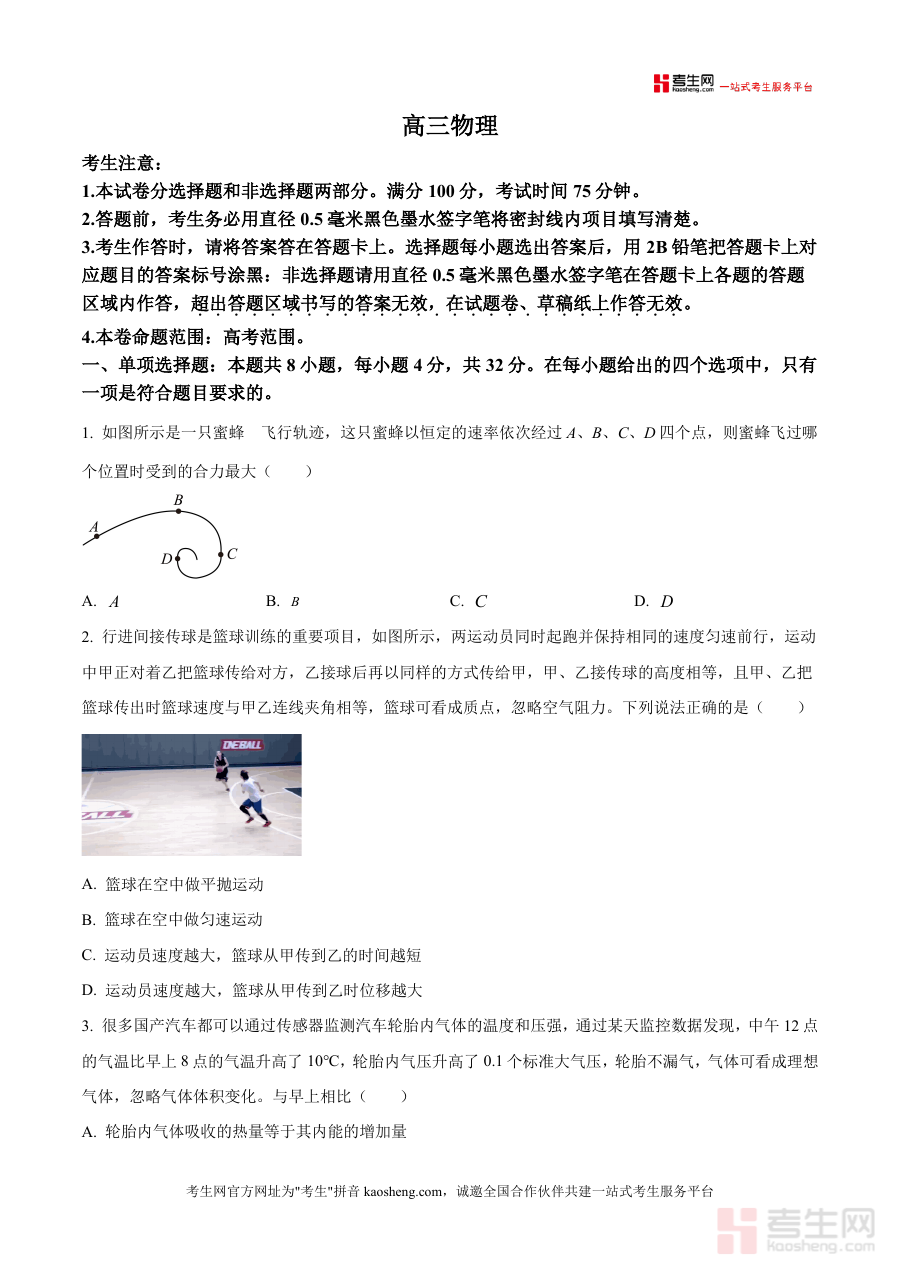 《精品解析:安徽省九师联盟2025-2026学年高三上学期11月联考物理试题(原卷版)》是一份服务于高三物理备考阶段检测需求的权威联考真题资料,核心定位为反映安徽地区高三物理教学进度与高考命题趋势的数据载体。主要内容涵盖高考范围下的单项选择题8小题、多项选择题2小题及非选择题5小题,覆盖力学、电磁学等核心模块考点;特色亮点在于依托九师联盟的区域教研优势设计典型试题,贴合高三上学期11月复习进度,保留真实考试场景中的答题规范提示(如答题卡使用要求),且配套解析部分能深度拆解考点关联与解题思路,助力学生掌握核心知识应用方法。