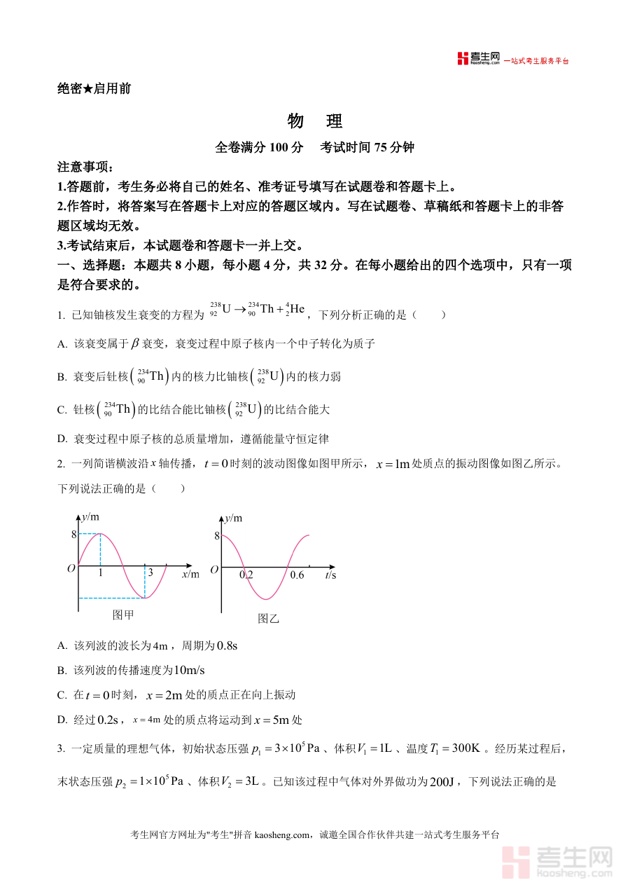 核心用途在于为高三物理备考提供标准化真题训练素材,助力学生构建科学复习体系;使用场景覆盖学生自主刷题巩固、教师课堂检测评估、备考机构模拟考试组卷等多元场景;用户价值体现在帮助学生熟悉联考题型结构与高频考点分布,提升解题速度与准确率,同时为教师提供真实教学反馈依据,优化教学策略;备考优势方面,该原卷能有效强化应试能力,通过真题训练让学生提前适应考试节奏与难度变化,针对性发现知识薄弱环节并进行专项突破,提升复习效率。