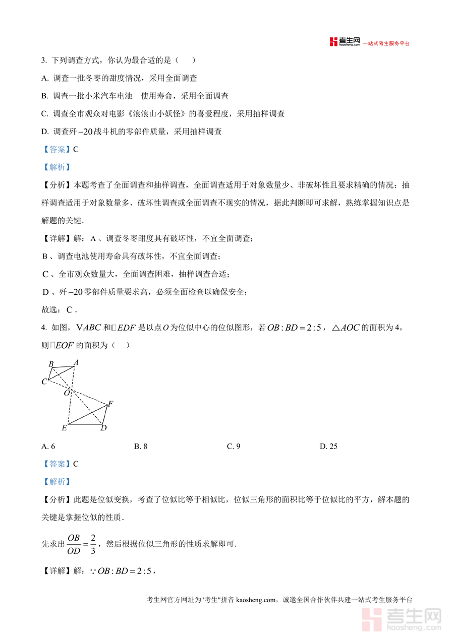 该资料核心用途在于助力九年级学生高效备考期中数学考试,适用场景覆盖日常课后错题订正、单元复习高频考点强化、考前一周真题题型模拟适应等。通过使用这份资料,学生可快速明确西南大学附中期中命题偏好(如几何综合题位似变换与圆切线结合题型),掌握不同题型最优解题路径——例如选择题排除法应用、解答题辅助线添加技巧等;同时帮助建立错题归因习惯(如解析中"全面调查与抽样调查适用场景混淆"易错点标注),显著提升应试能力与解题效率。相比普通练习资料,其校考真题针对性与解析深度更能满足学生把握重点校命题规律需求。