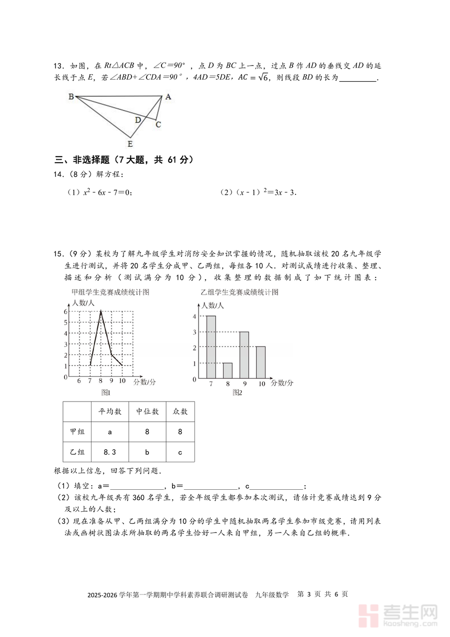 本试卷适用于深圳市宝安区及周边地区九年级学生(尤其是目标参与区域联考的群体)、初中数学教师及家教辅导人员。作为区域联合命题的期中试卷,它具有不可替代的权威性与针对性,能有效帮助学生查漏补缺、强化知识体系;长期来看可作为中考复习阶段回顾九年级上册核心知识点的重要资料——例如综合实践题中的图形旋转变换探究能培养几何思维能力,为后续中考几何综合题打下基础。总之,这份试卷对于提升学生数学应试能力与备考效率具有重要意义,是九年级数学期中复习不可或缺的资源。