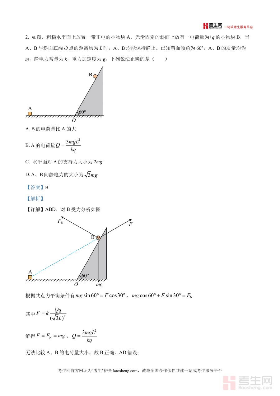 核心用途在于辅助学生巩固力学(如运动学公式应用、动量守恒定律)与电场(如电势差计算、电场力做功分析)模块知识体系,强化应试能力;使用场景覆盖课堂同步练习后的错题订正、自主复习时考点强化及考前冲刺阶段的真题模拟训练等;用户价值体现在通过逐题解析明确考点关联(如机车启动问题与牛顿运动定律结合),对比选项差异掌握命题规律(如静电场电势判断的常见陷阱),缩短解题时间并提高准确率——例如选择题第5题卫星变轨解析,不仅给出选项正误原因,还补充轨道切换能量变化规律及公式推导路径,助力备考资料高效利用。