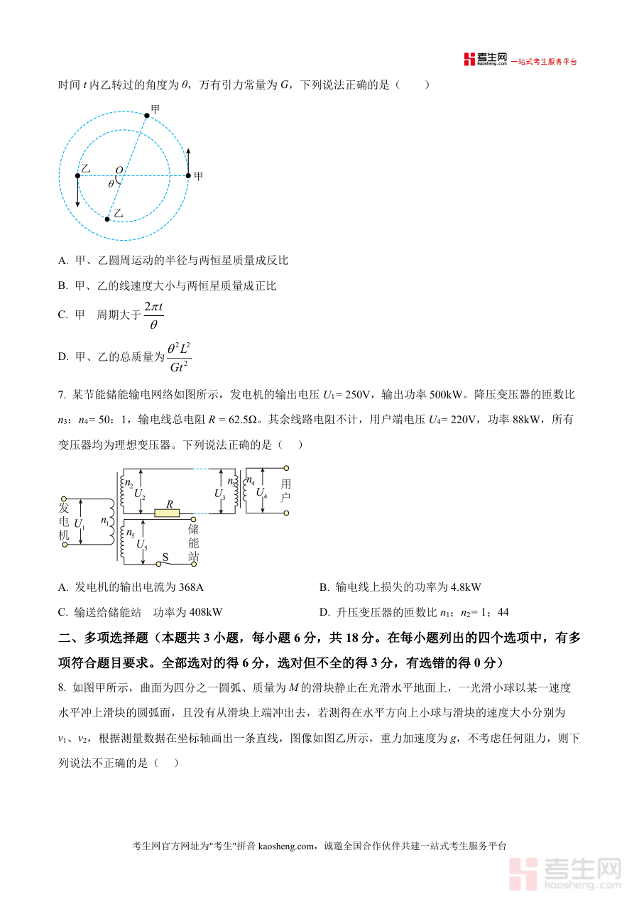 《精品解析:2026届广东省深圳市多校高三上学期一模物理试卷(原卷版).docx》是一份针对深圳多校联考场景的高三物理备考核心资料,定位为高三学生一轮复习后期权威性模拟训练载体。其内容严格遵循高考物理命题规范,包含75分钟考试时长、100分满分结构,覆盖选择题(单选7题、多选3题共46分)与非选择题(实验题2道、计算题3道共54分)两大模块,考点涉及核反应衰变规律、运动学v-t图像综合分析、受力平衡与牛顿定律应用、波动传播特性、电磁学速度选择器与磁流体发电机原理、天体物理双星系统计算、交变电流与变压器分析等高考核心模块;特色亮点在于完全还原深圳多校联考真实命题风格与难度梯度,保留原题题干表述及选项设置,为考生提供贴近实战场景训练素材。