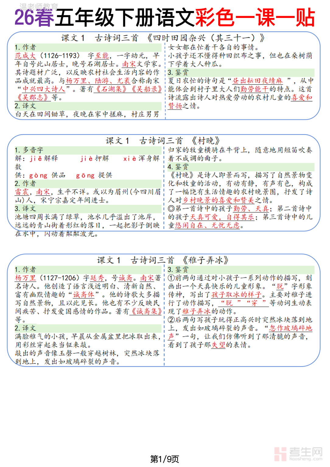 26 春小学语文一课一贴(五年级下)紧扣统编版教材编排,逐课梳理教学重难点,涵盖生字词、课文理解、修辞运用、写作技巧等核心内容。每课聚焦一个知识点,由浅入深讲解,兼顾基础夯实与能力提升,适配课堂教学、课后复习与小升初衔接。内容贴合五年级学生认知特点,帮助学生系统梳理知识、突破学习难点,全面提升语文综合素养。请添加微信 18617049513 进专属群,获取更多免费资源!
