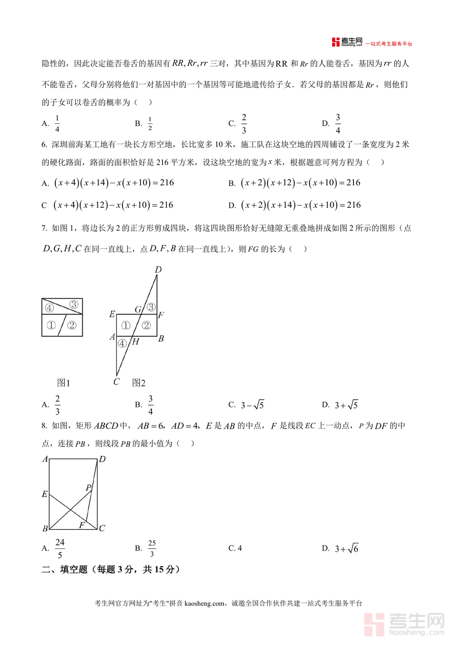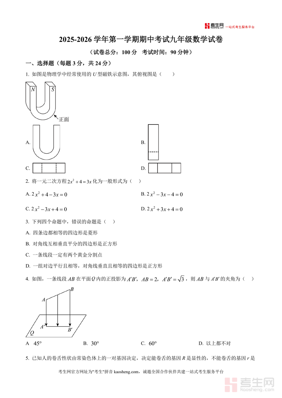 《精品解析:广东省深圳市南山区南山外国语学校(集团)2025-2026学年九年级上学期11月期中数学试题(原卷版).docx》是一份针对深圳南山外国语学校九年级学生期中备考的高质量真题原卷资料。该资料完整呈现了该校同期期中数学考试原题,包含选择题(8题)、填空题(5题)、解答题(7题)三大题型,覆盖投影与视图、一元二次方程、四边形性质与判定、概率统计、几何变换、实际应用等九年级上册核心知识模块。其特色亮点在于严格贴合该校教学进度与命题风格,题目设置兼顾基础与能力提升,如第6题结合前海工地场景考查一元二次方程应用,第19题融入均值不等式拓展应用,既体现数学与生活联系,又培养高阶思维能力,是极具参考价值的备考资料。