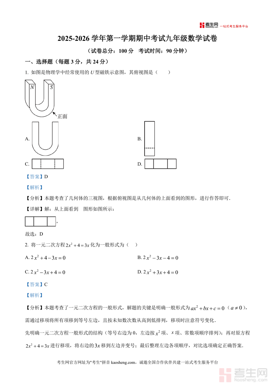 《精品解析:广东省深圳市南山区南山外国语学校(集团)2025-2026学年九年级上学期11月期中数学试题(解析版).docx》是一份聚焦九年级数学期中备考的精准化教学资料,核心定位为区域名校真题深度剖析工具,主要内容覆盖一元二次方程、相似三角形、概率统计、几何投影等九年级上册核心知识点,特色亮点在于每道试题均配备分层级解析:不仅给出标准答案,还包含考点溯源、解题步骤拆解及常见错误警示,同时结合南山区本地教学大纲与命题趋势,帮助学生精准捕捉考试重点方向。
