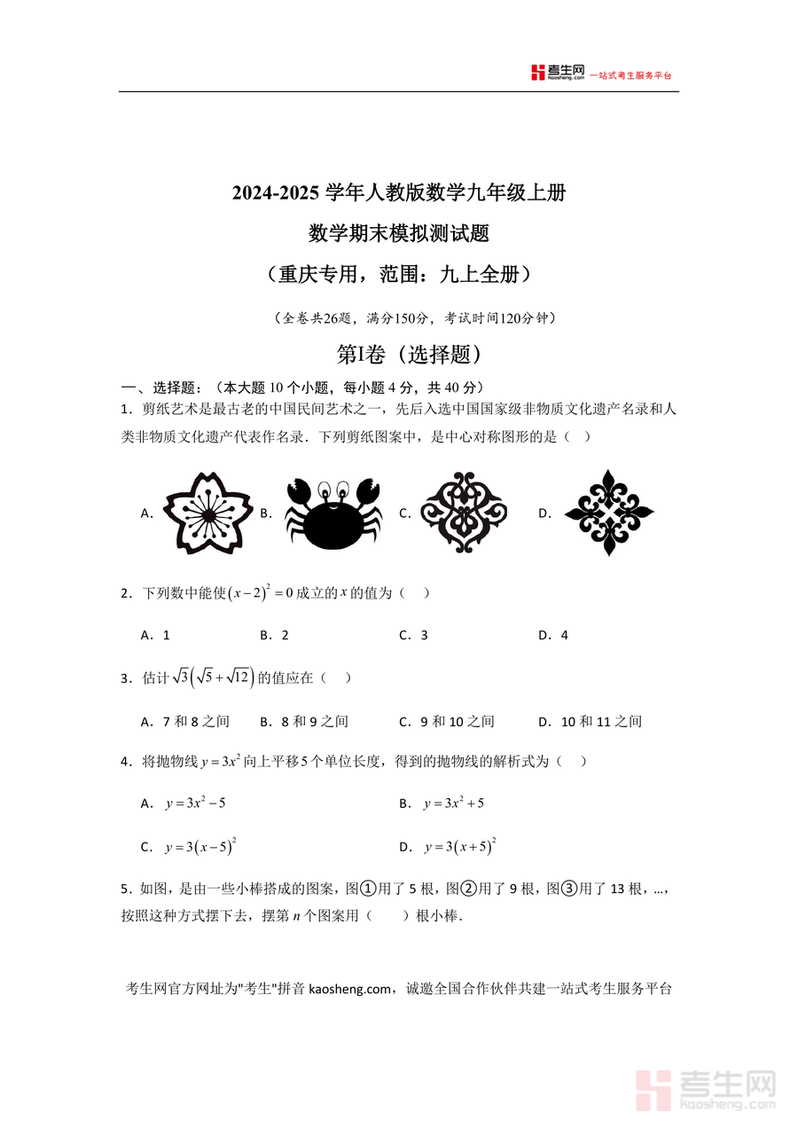本资料适用于重庆地区使用人教版数学教材的九年级学生,以及从事九年级数学教学工作的教师和参与家庭辅导的家长。作为专业备考资料,它不仅能帮助学生适应期末考节奏,巩固核心考点,还能培养学生规范答题习惯与逻辑思维能力;其不可替代性体现在结合重庆本地考情设计,长期价值在于可作为后续复习阶段回顾九上知识点的重要参考资料,助力学生构建完整知识体系。