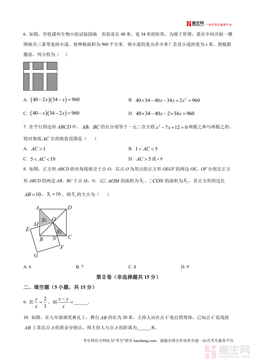 该资料核心用途是帮助学生熟悉期中测试题型结构与难度梯度,使用场景涵盖课堂同步练习、课后自主刷题、考前模拟测试等。其用户价值在于通过真题训练提升应试能力,精准定位一元二次方程应用、几何证明等知识薄弱点;备考优势显著,对比普通模拟题,该真题更具针对性,能让学生提前适应本校命题逻辑与题型特点,减少考试陌生感,高效提升备考效率,是九年级数学期中备考资料中的关键资源。