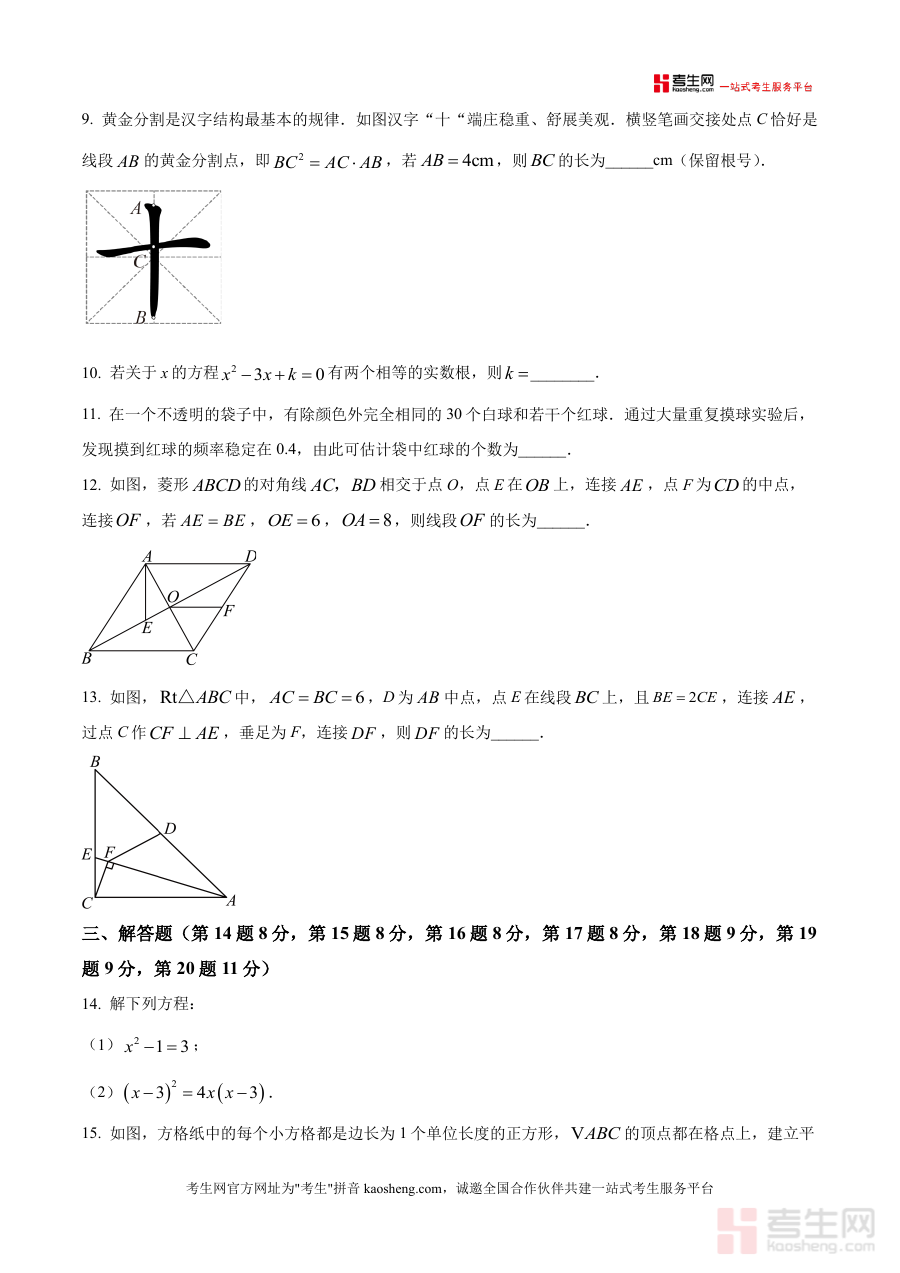 《精品解析:广东省深圳市宝安区西乡十几校2025-2026学年九年级上学期期中调研数学试题(原卷版).docx》是一份聚焦于2025-2026学年第一学期广东省深圳市宝安区西乡片区十余所学校联合组织实施的九年级数学期中调研考试原卷类备考资料。该资料直接呈现本次区域联合期中调研考试数学试卷原貌,反映该片区九年级上学期中期阶段对数学学科学习成果检测具体形式与考查方向,为相关使用者提供与实际考试完全一致的试卷载体。