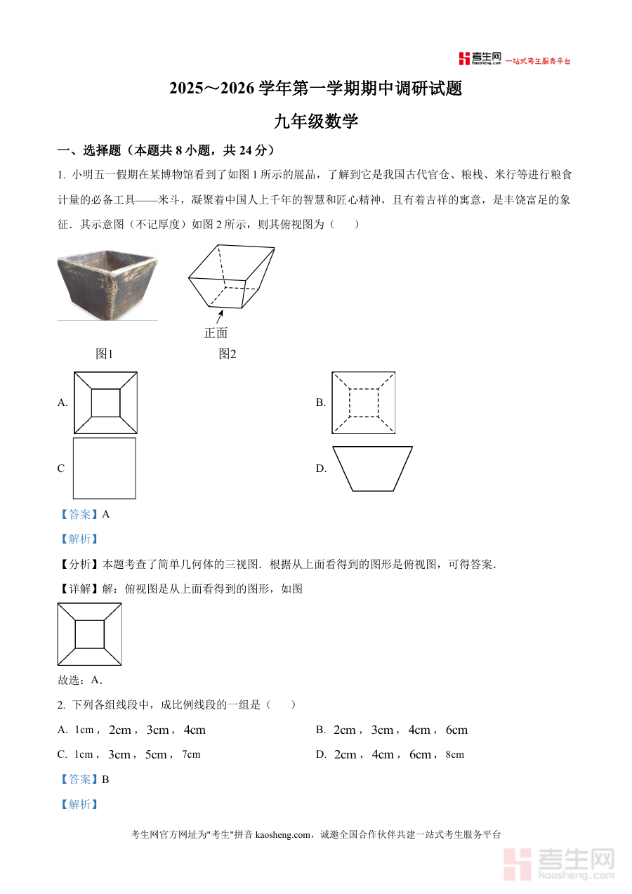 这份资料主要用于九年级学生期中阶段数学学习效果自我检测与备考准备,同时也为参与本次调研考试学校数学教师及辅导人员提供命题方向与考查重点数据支持,帮助使用者准确把握本次期中调研考试要求并规划后续学习或教学安排,不含主观编造题型或知识点拓展内容。