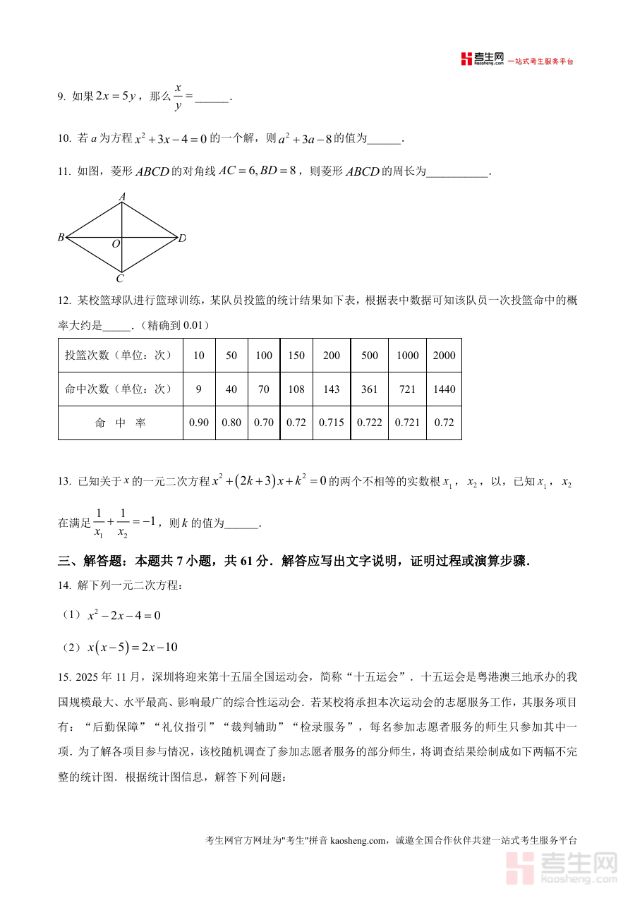 《精品解析:广东省深圳市福田区红岭实验学校(新洲)2025-2026学年上学期九年级期中考试数学试卷(原卷版)》是一份针对广东省深圳市福田区红岭实验学校(新洲)在2025-2026学年上学期面向九年级学生组织的期中考试数学科目的原卷资料。该资料属于学校内部阶段性学业水平检测范畴,对应该学年上学期九年级数学学科教学进度下的中期考查安排,能够体现该校该阶段数学学科的检测方向与试卷结构设置,为相关群体提供真实的考试资料参考。