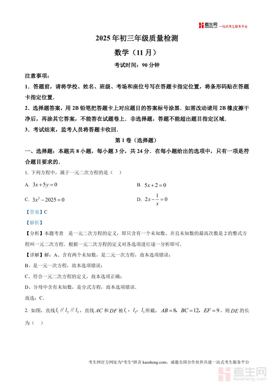 《精品解析:广东省深圳市福田区红岭实验学校(新洲)2025-2026学年上学期九年级期中考试数学试卷(解析版)》是一份针对广东省深圳市福田区红岭实验学校(新洲)特定学期与年级考试设计的数据类备考资料。该资料对应2025-2026学年上学期该校九年级期中考试数学科目试卷解析版本,符合学校年初三年级数学质量检测安排,为师生提供考试相关解析支持,不包含编造的具体知识点或题型内容,仅基于元信息呈现资料属性。