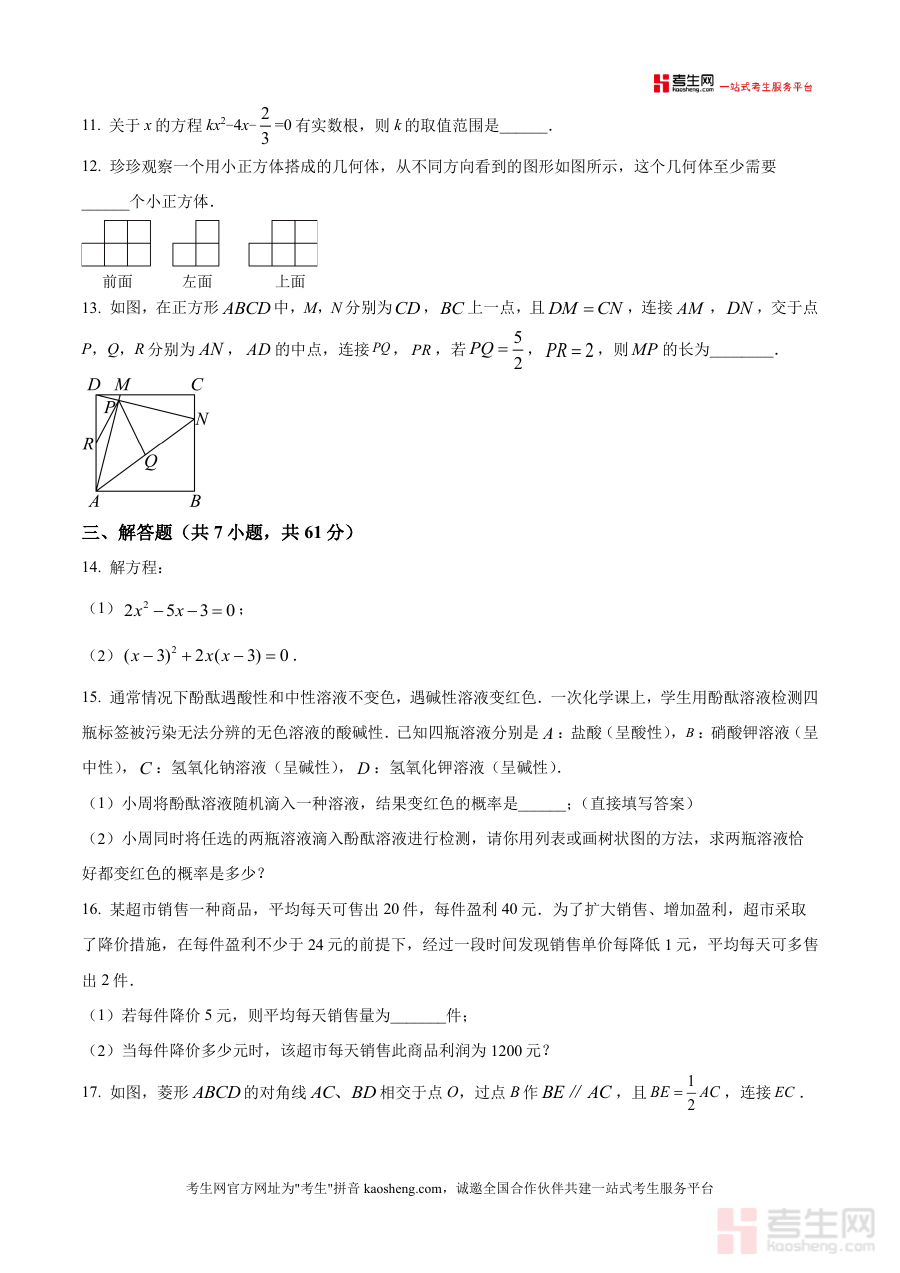 这份资料主要用于辅助九年级学生进行期中前的系统复习与模拟演练环节,帮助学生提前熟悉期中数学考试的整体形式与考查方向;同时也可为数学教师提供教学评估与学情分析的数据支撑材料,助力教师优化教学计划与备考指导方案,并确保教学内容与考试需求紧密衔接。