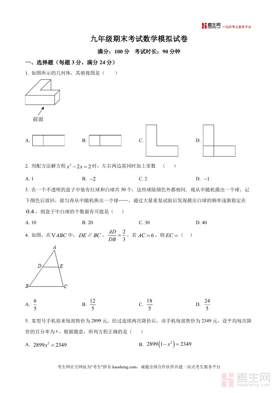 《精品解析:广东省深圳市宝安区2025-2026学年上学期九年级期末考试数学模拟试卷(考试范围九年级上+九年级下第1、2章)(原卷版)》是一份针对广东省深圳市宝安区2025-2026学年上学期九年级期末考试设计的数学模拟备考资料。该试卷严格遵循本地期末检测标准,明确标注考试范围涵盖九年级上册全部内容及九年级下册第1、第2章知识,与宝安区九年级数学期末考核的知识覆盖维度高度匹配,为师生提供贴合区域教学进度与考核要求的练习载体。
