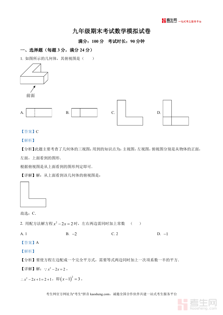 该资料可用于宝安区九年级学生在期末备考阶段开展自我检测与知识巩固活动,帮助学生熟悉期末考试题型结构及答题规范要求;同时也可作为教师开展期末复习教学活动辅助材料,为教师制定教学计划、调整复习重点提供参考依据,助力教学与备考工作高效推进。
