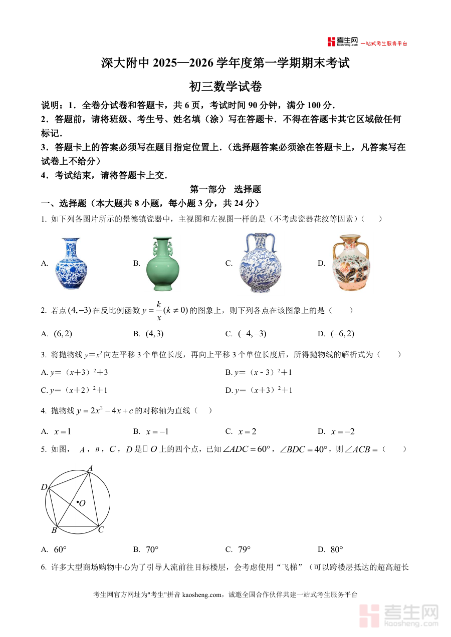 精品解析广东省深圳市深圳大学附属中学2025202。6学年九年级上学期1月期末数学试题原卷版docx是。一份针对特定阶段考试的备考资料核心围绕考试的时间地。区与用途展开为考生提供阶段检测与备考参考这份资料的。核心用途在于帮助对应年级的学生明确学习重点通过阶段。考试诊断学情为后续。