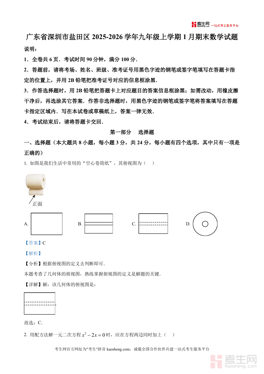精品解析广东省深圳市盐田区20252026学年九年。级上学期1月期末数学试题解析版docx是一份针对特。定阶段考试的备考资料核心围绕考试的时间地区与用途展。开为考生提供阶段检测与备考参考这份资料的核心用途在。于帮助对应年级的学生明确学习重点通过阶段考试诊断学。情为后续复习规划提供依据无论是开学摸底阶段。