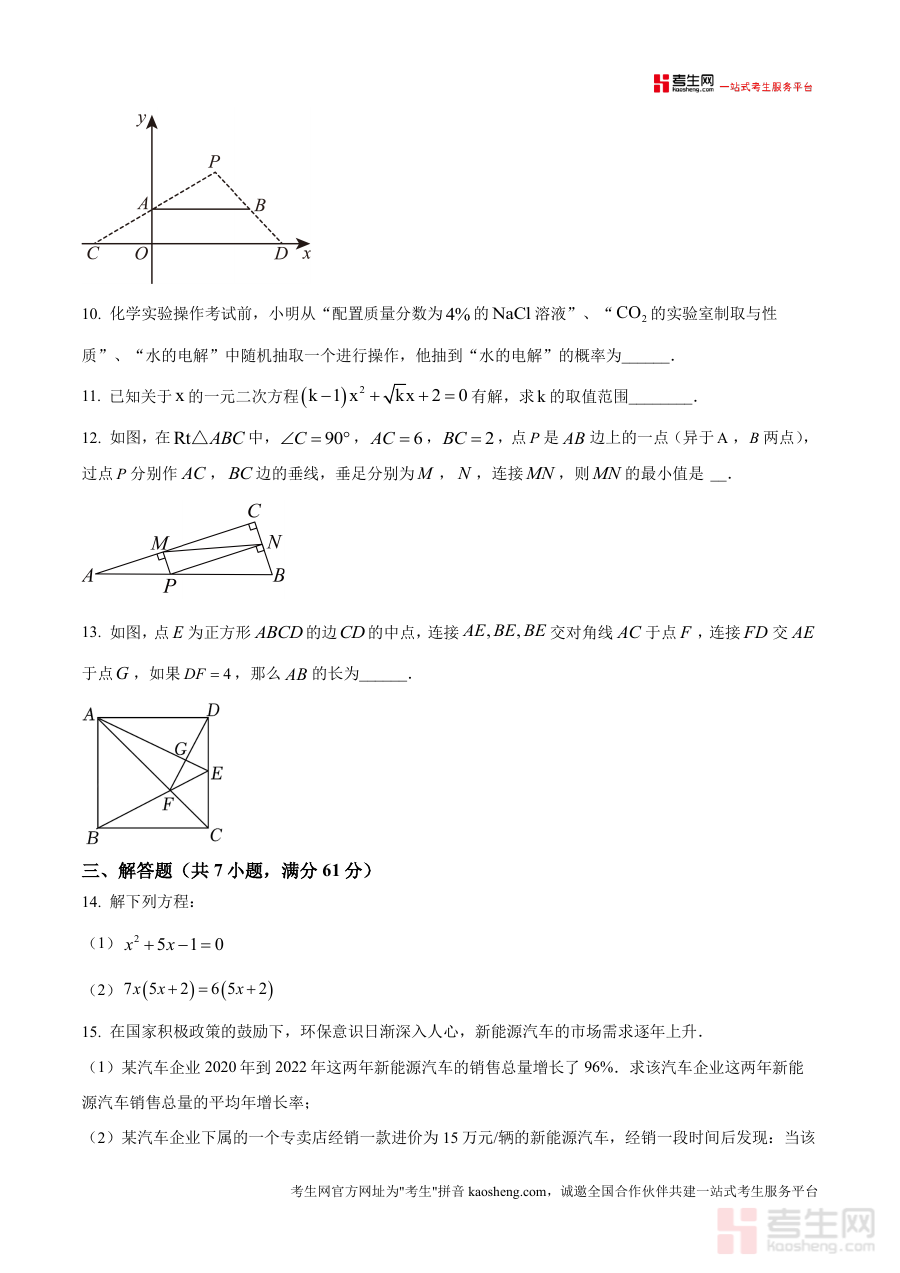 这份资料的主要用途在于为九年级学生提供该学年上学期数学阶段质量检测考试的原卷内容,帮助学生熟悉本次考试整体结构与命题布局;同时也可为数学教师及备考辅导人员提供了解本次考试形式特点与命题背景的数据支撑,辅助其开展针对性教学计划制定或备考指导工作,确保教学与辅导方向贴合本地考试实际需求。