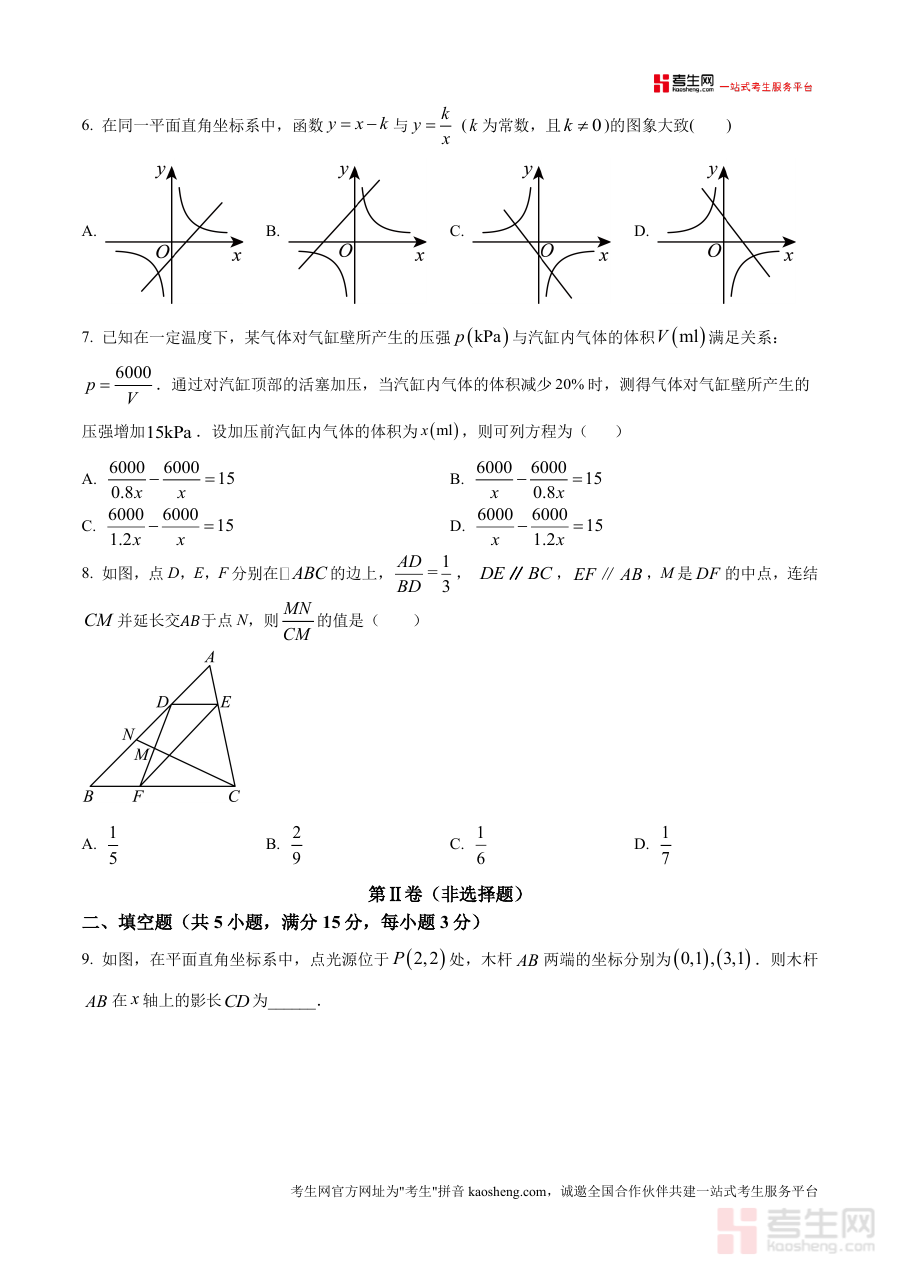 适用人群为广东省深圳市福田区2024-2025学年在读的九年级学生,以及从事该区域九年级数学教学、备考辅导工作的教师与相关人员。作为本次质量检测考试原卷资料,它具有高度贴合本地教学实际与阶段评价标准的特性,能够为使用者提供与正式考试一致的参考样本,助力其有效应对本次数学质量检测考试,提升对本地阶段考试的适应度。