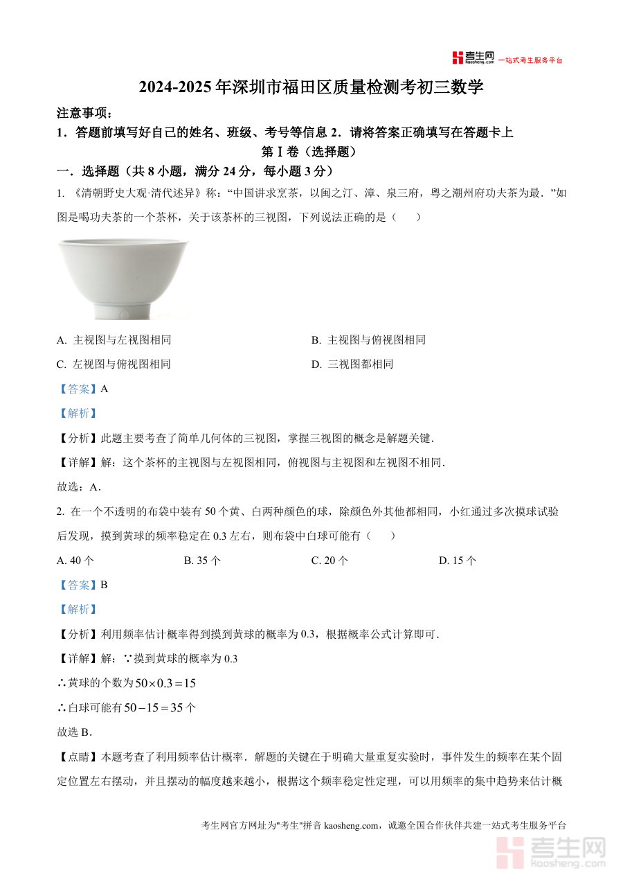 精品解析广东省深圳市福田区20242025学年九年。级上学期质量检测考试数学试题解析版docx是一份针。对特定阶段考试的备考资料核心围绕考试的时间地区与用。途展开为考生提供阶段检测与备考参考这份资料的核心用。途在于帮助对应年级的学生明确学习重点通过阶段考试诊。断学情为后续复习。
