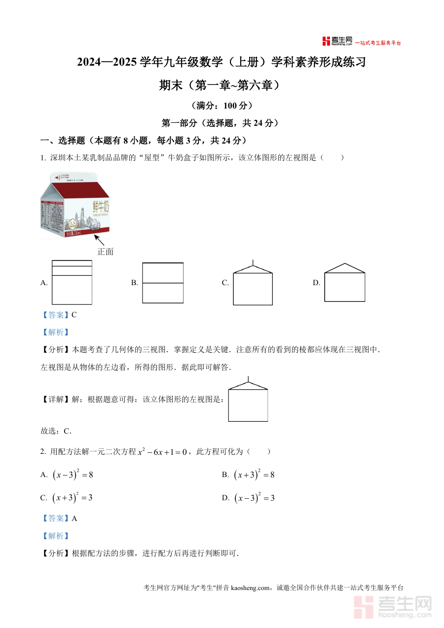 《精品解析:广东省深圳市龙岗区宏扬学校2024-2025学年九年级上学期12月期末数学试题(解析版)》是一份针对广东省深圳市龙岗区宏扬学校特定学年学期期末数学考试编制而成的解析类备考资料。该资料对应九年级数学上册第一章至第六章内容范围,聚焦期末阶段学科素养形成练习需求,旨在通过完整试题及详细答案解析帮助使用者把握考试方向与核心要求。