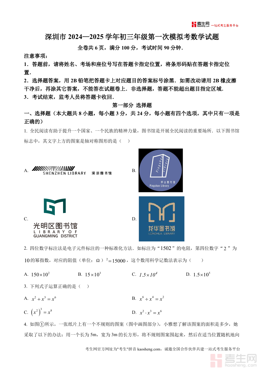 精品解析广东省深圳市31校20242025学年九年。级下学期第一次模拟考试数学试卷原卷版docx是一份。针对特定阶段考试的备考资料核心围绕考试的时间地区与。用途展开为考生提供阶段检测与备考参考这份资料的核心。用途在于帮助对应年级的学生明确学习重点通过阶段考试。诊断学情为后续复。