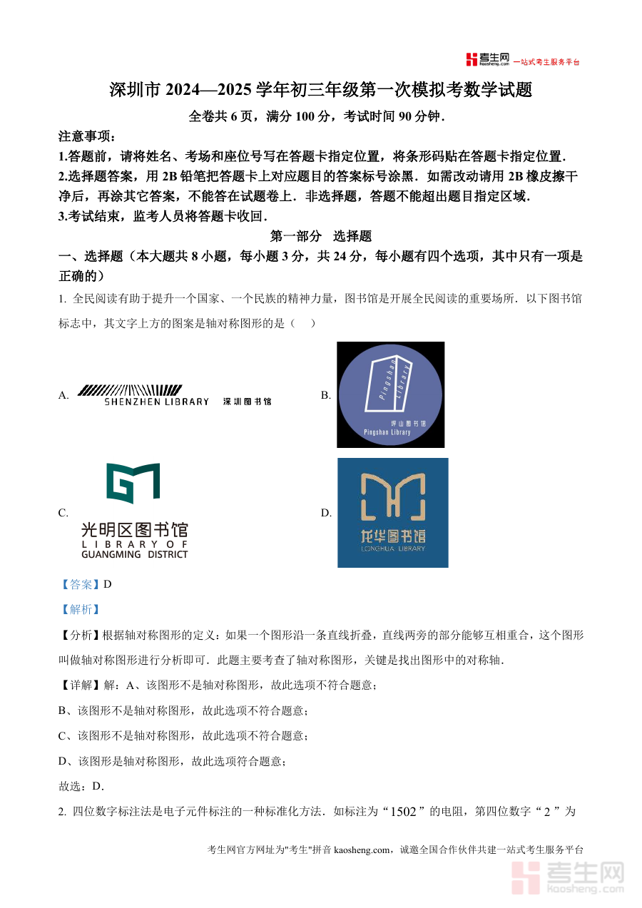 精品解析广东省深圳市深圳高级中学集团2024202。5学年九年级下学期第一次模拟考试数学试卷解析版do。cx是一份针对特定阶段考试的备考资料核心围绕考试的。时间地区与用途展开为考生提供阶段检测与备考参考这份。资料的核心用途在于帮助对应年级的学生明确学习重点通。过阶段考试诊断学情为。