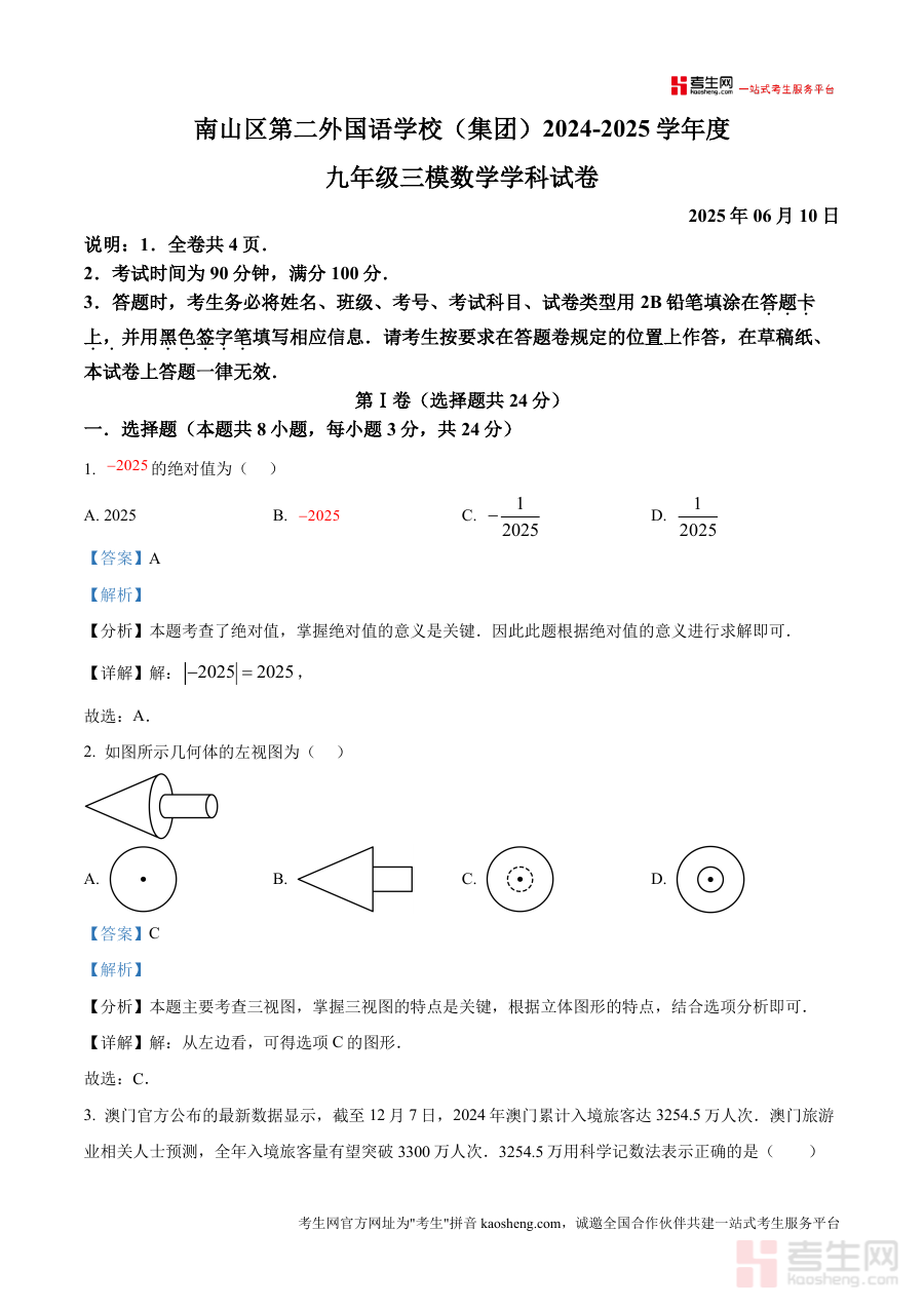 精品解析2025年广东省深圳市南山区第二外国语集团。三模联考数学试题解析版docx是一份针对特定阶段考。试的备考资料核心围绕考试的时间地区与用途展开为考生。提供阶段检测与备考参考这份资料的核心用途在于帮助对。应年级的学生明确学习重点通过阶段考试诊断学情为后续。复习规划提供依据无论是开学摸底阶段检测。