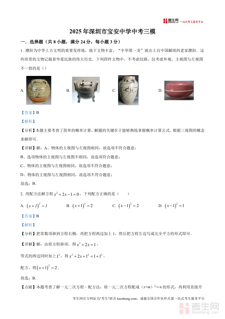 精品解析2025年广东省深圳市宝安中学中考三模数学。试题解析版docx是一份针对特定阶段考试的备考资料。核心围绕考试的时间地区与用途展开为考生提供阶段检测。与备考参考这份资料的核心用途在于帮助对应年级的学生。明确学习重点通过阶段考试诊断学情为后续复习规划提供。依据无论是开学摸底阶段检测还是考前。