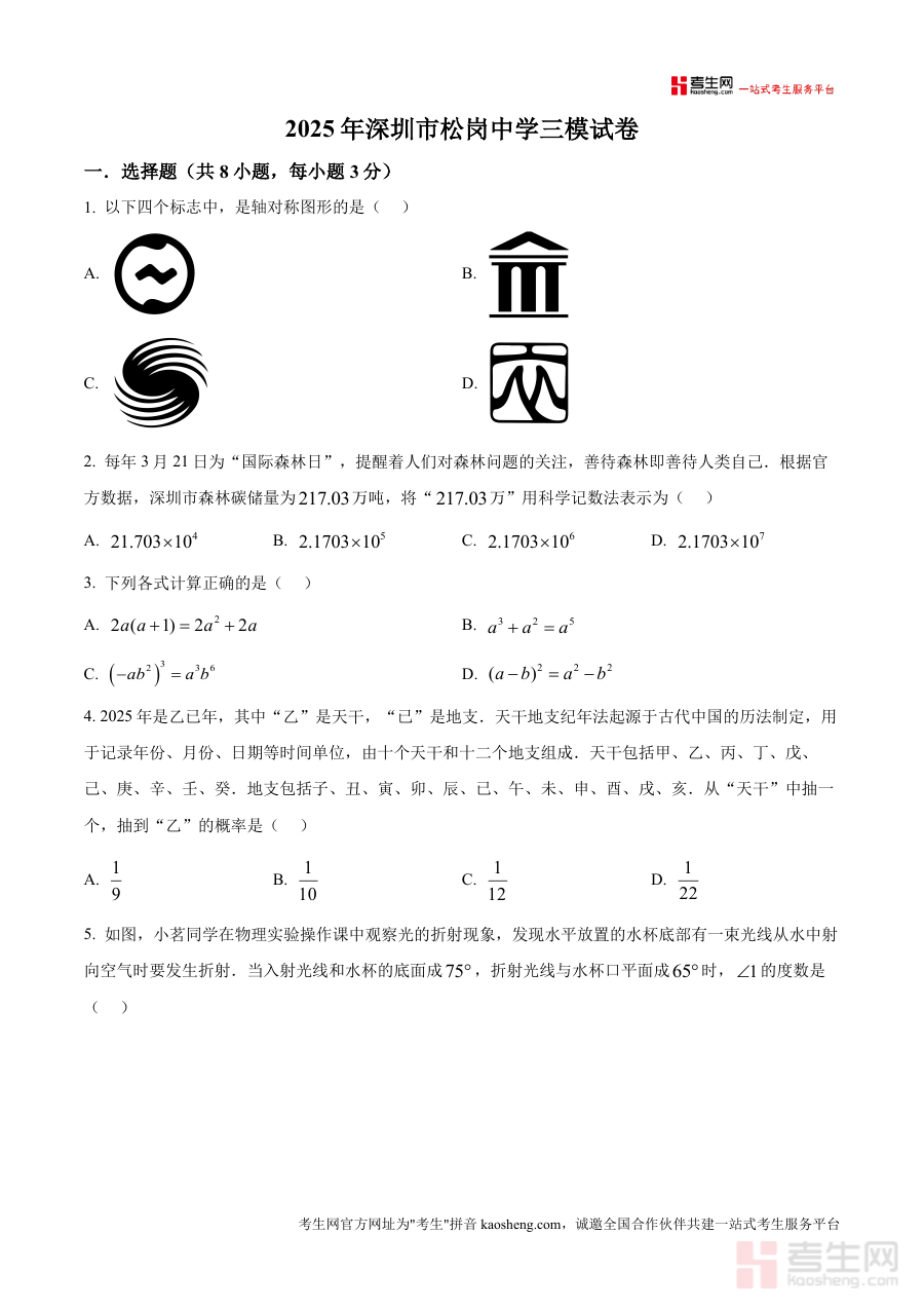 《精品解析:2025年广东省深圳市松岗中学中考三模试卷(原卷版).docx》是一份针对2025年广东省深圳市松岗中学中考三模考试设计的备考资料。该资料对应特定年份与地区学校的阶段性考试需求,能够为相关备考群体提供符合考试场景的原卷内容,帮助使用者熟悉考试形式与整体结构。作为中考前重要阶段检测的配套资料之一,它紧密贴合松岗中学中考三模考试的设置标准,为后续备考提供基础参考依据,助力使用者提前适应考试环境与节奏。