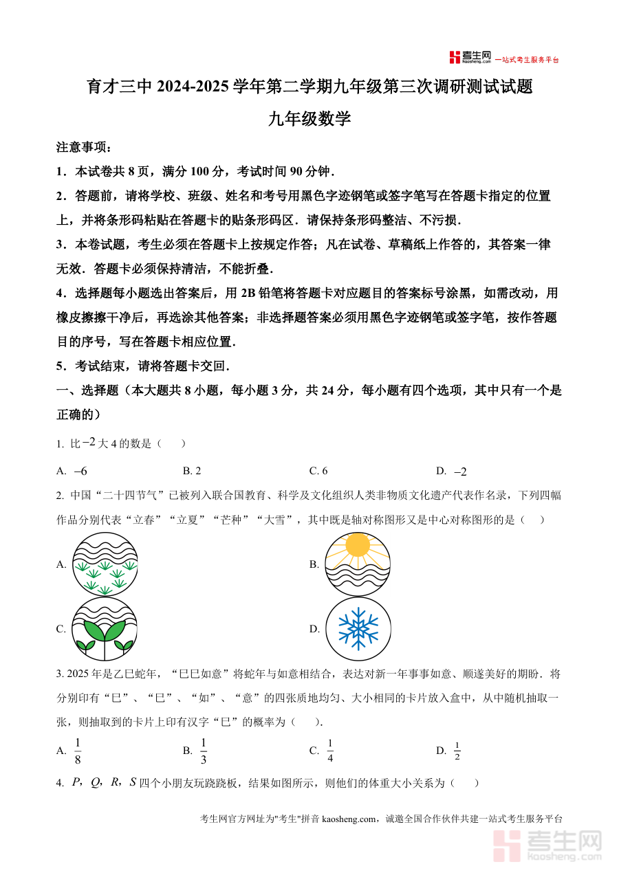 精品解析2025年广东省深圳市蛇口育才教育集团育才。三中九年级中考三模数学试卷原卷版docx是一份针对。特定阶段考试的备考资料核心围绕考试的时间地区与用途。展开为考生提供阶段检测与备考参考这份资料的核心用途。在于帮助对应年级的学生明确学习重点通过阶段考试诊断。学情为后续复习规划提供依据无论是开学摸底阶。