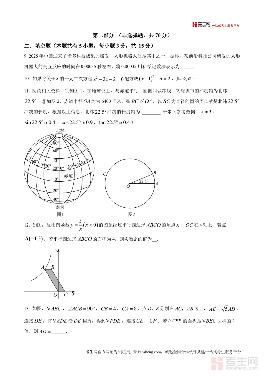该资料的适用人群为2025届广东省深圳市蛇口育才教育集团育才二中九年级学生及负责该校九年级数学教学与备考指导的教师。对学生而言,它是中考冲刺阶段自我检测、熟悉考试形式的重要工具;对教师而言,则可作为了解学生阶段性学习情况、优化备考策略的数据参考来源。
