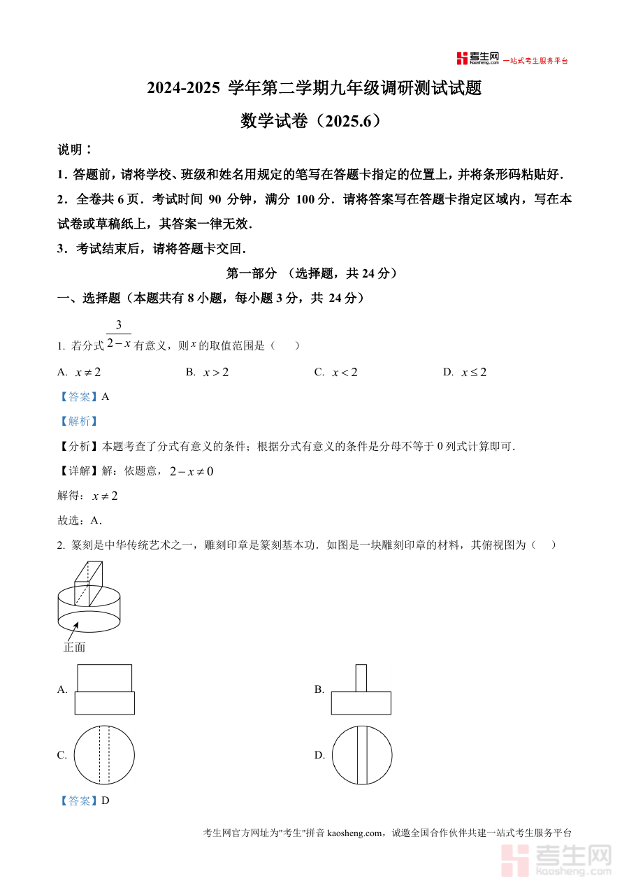 《精品解析:2025年广东省深圳市蛇口育才教育集团育才二中中考三模数学试卷(解析版).docx》是一份针对2025年广东省深圳市蛇口育才教育集团育才二中九年级中考三模数学考试设计备考资料。该资料对应2024-2025学年第二学期九年级调研测试试题中的数学试卷部分,考试时间为2025年6月,包含试卷原题及详细解析内容,所有信息均基于文件名及提供片段元信息展开,不涉及编造具体知识点或题型细节。
