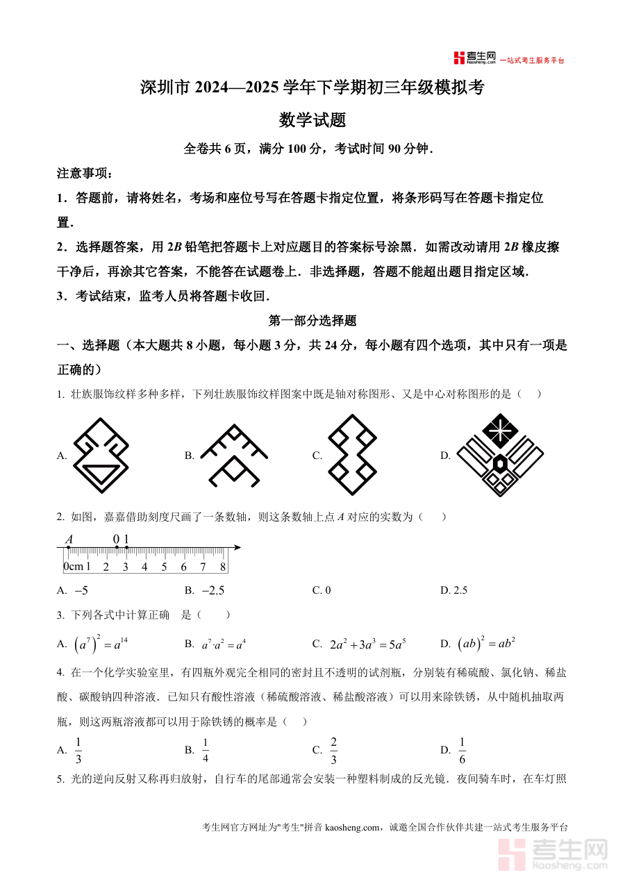 《精品解析:广东省深圳市宝安区外国语学校2025年九年级数学三模试卷(原卷版).docx》是一份针对广东省深圳市宝安区外国语学校2025年九年级下学期数学三模考试的原卷版备考资料。该资料对应深圳市2024—2025学年下学期初三年级模拟考数学科目,严格遵循该考试官方格式与要求编制,真实反映此次三模考试整体框架与基本设置,保留原始试卷呈现形式,便于使用者接触与正式考试一致的试卷结构。