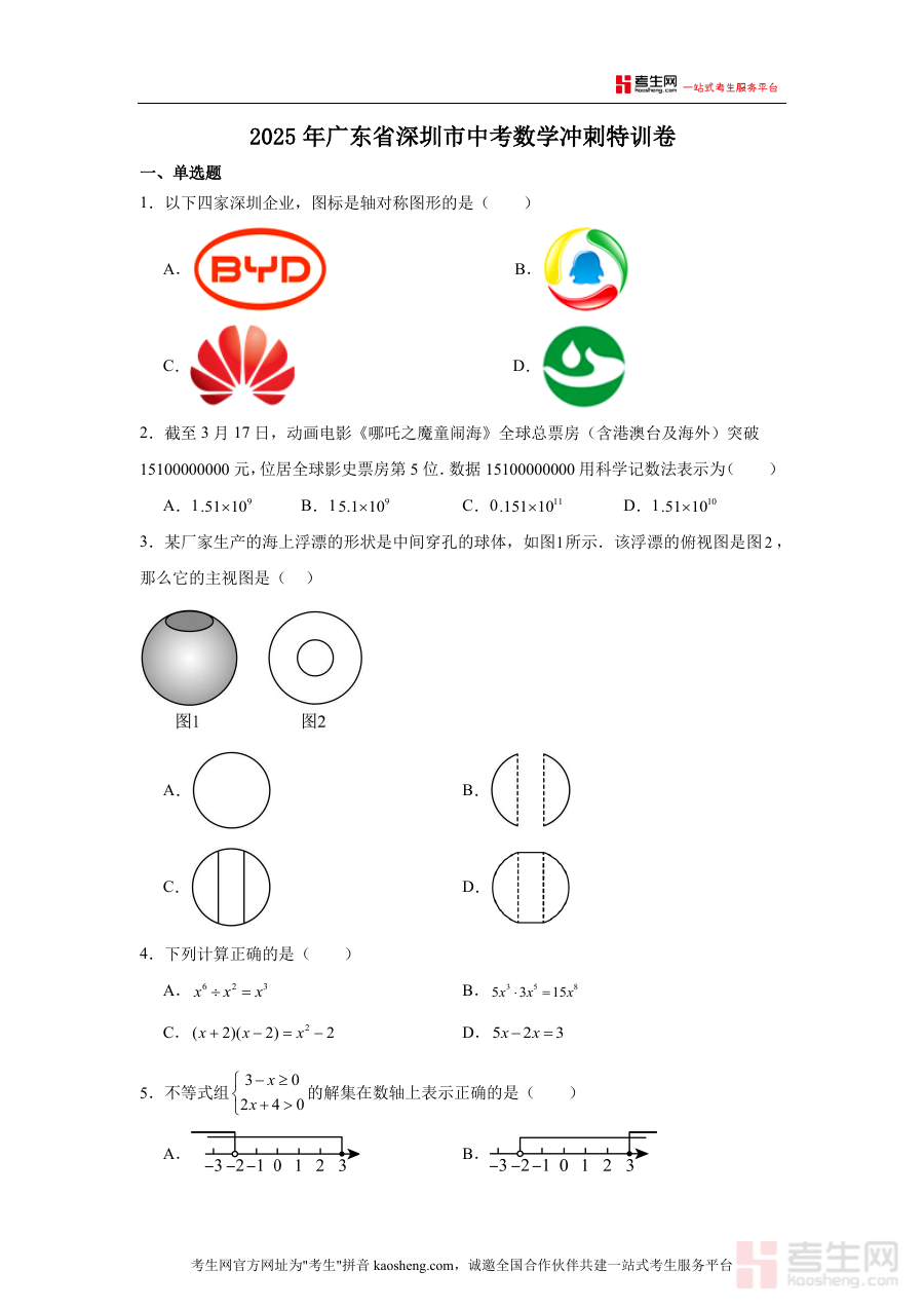 该特训卷适用于2025年参加广东省深圳市中考数学科目的考生群体,以及从事中考数学辅导或教研工作相关人员。它作为冲刺阶段检测工具,能够辅助考生规划备考方向,为相关人员提供阶段训练参考,具有明确且贴合需求的冲刺阶段备考价值,但不涉及具体提升效果或成绩预测等内容。