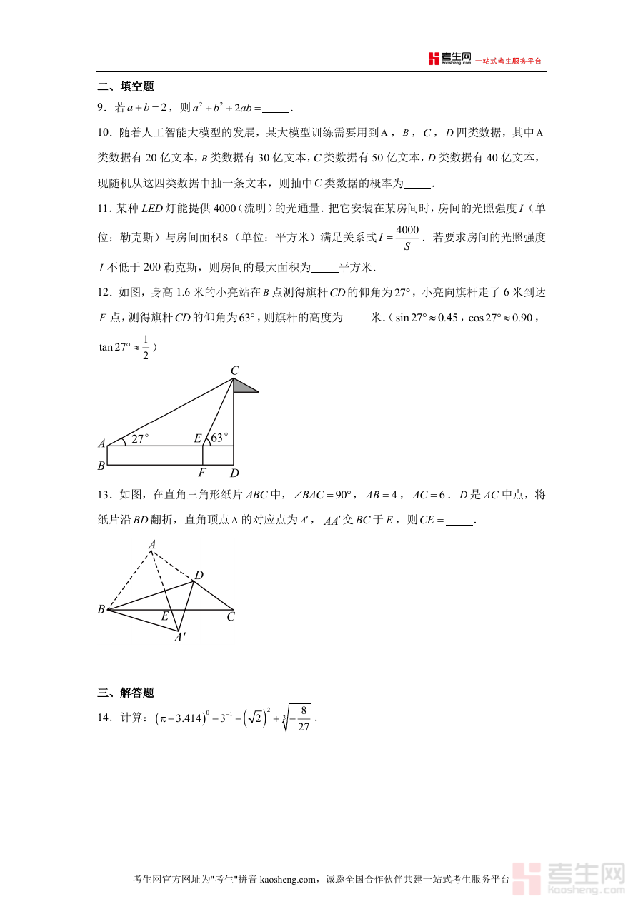 这份资料主要用于考生在中考数学冲刺阶段开展自我检测或模拟训练活动,帮助考生适应冲刺阶段训练节奏;同时也可作为教师或辅导人员开展冲刺阶段教学活动时参考使用,为相关教学安排提供支持依据。其用途明确指向冲刺阶段的备考辅助,但不包含具体的教学内容、解题方法或题型解析等细节信息。