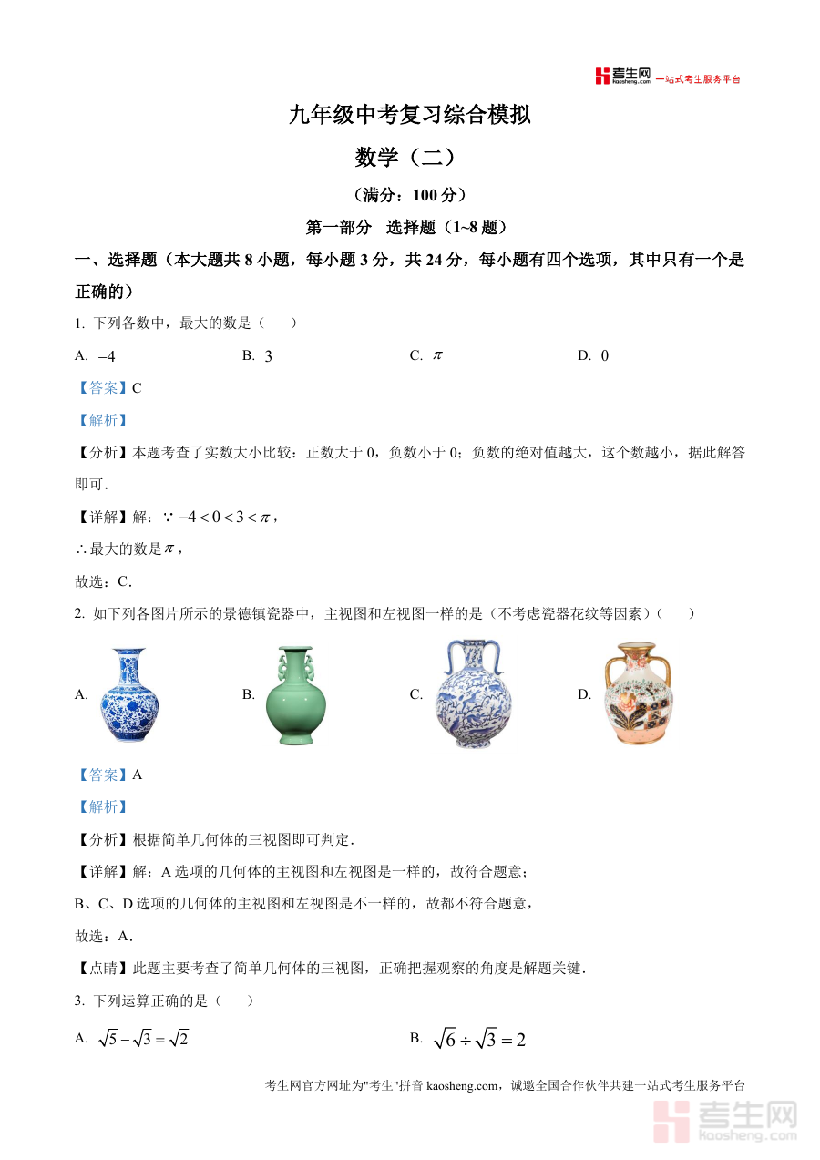 这份资料主要用于该校九年级学生在中考数学复习过程中开展模拟训练与自我评估活动,帮助学生熟悉本校中考模拟考试数学科目的题型结构与考查方向,同时也可作为教师开展课堂教学讲评、试卷分析及备考规划工作时的重要辅助材料,助力师生明确复习重点与方向。