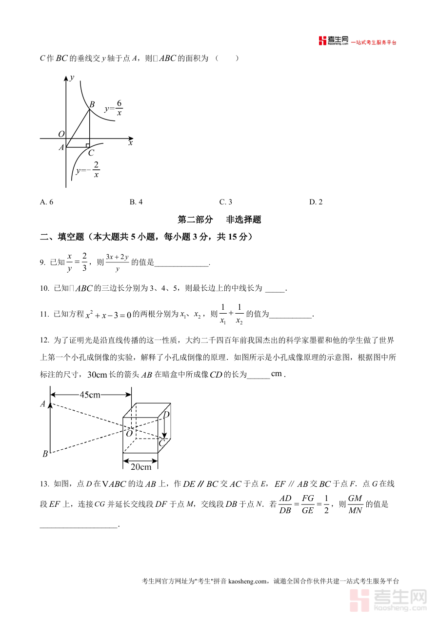 这份资料主要用于深圳市初三学生在中考备考过程中开展适应性训练与模拟检测。通过使用该试卷原卷版,考生可熟悉中考数学考试时长设置、试卷结构布局及答题规范等核心要素,提前适应考试节奏与形式,从而在正式考试前做好充分应试准备;同时也可为备考阶段性评估提供标准化依据,助力考生及时发现自身应试环节中的薄弱点。