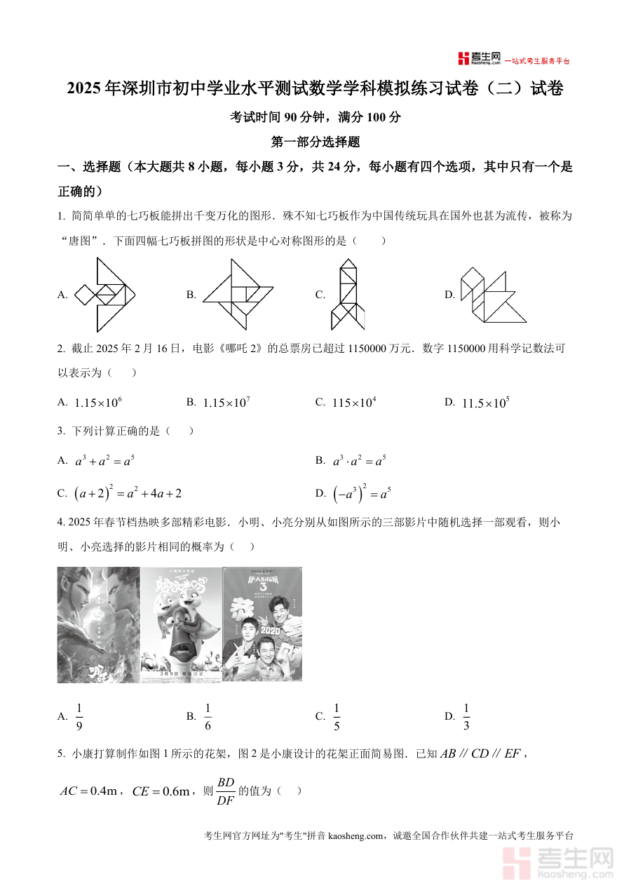 精品解析2025年广东省深圳市初中学业水平测试数学。模拟练习试卷二原卷版docx是一份针对特定阶段考试。的备考资料核心围绕考试的时间地区与用途展开为考生提。供阶段检测与备考参考这份资料的核心用途在于帮助对应。年级的学生明确学习重点通过阶段考试诊断学情为后续复。习规划提供依据无论是开学摸底阶段检测还。