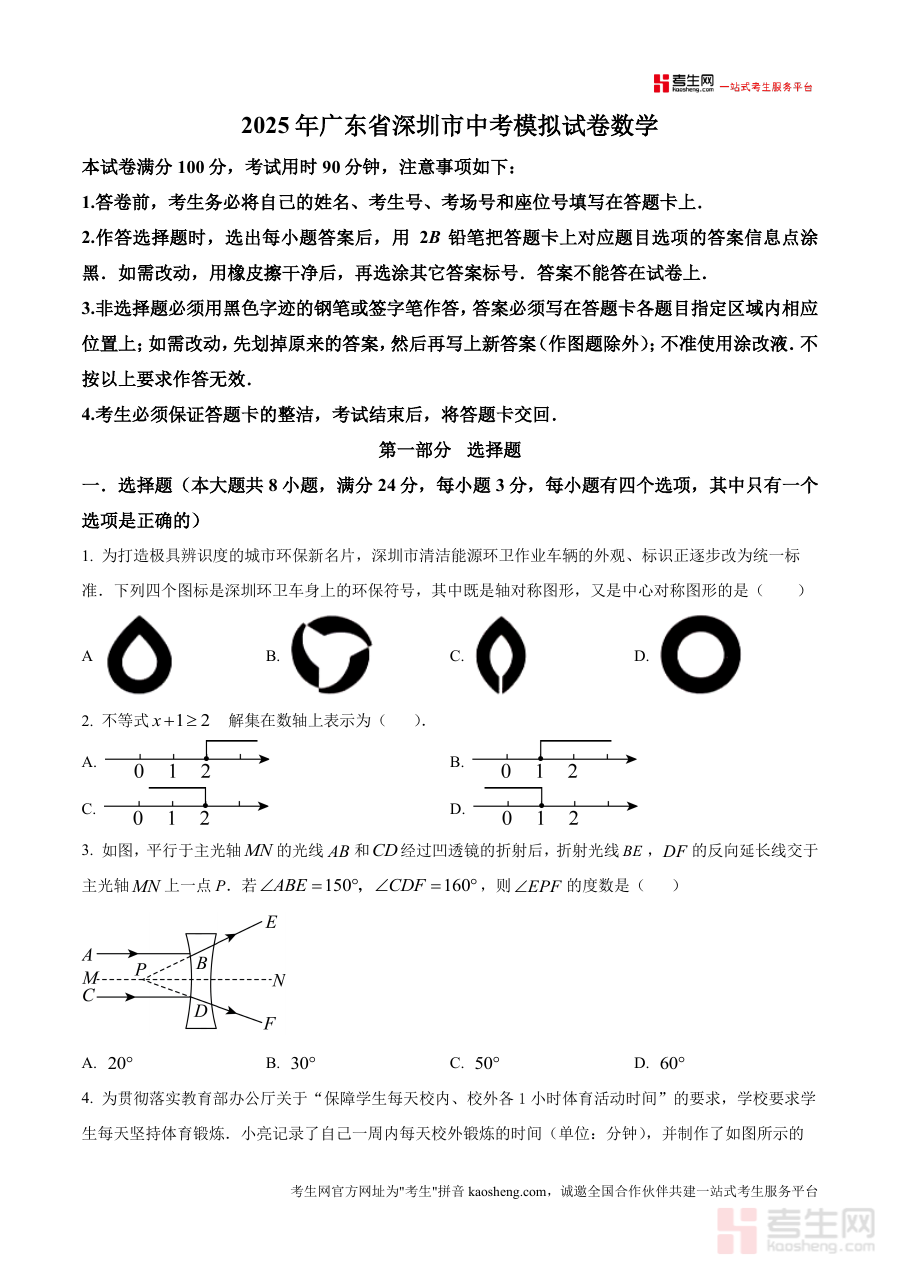《精品解析:2025年广东省深圳市罗湖区翠园东晓创新学校广东省深圳市中考模拟试卷(4月)(原卷版)》是一份针对2025年广东省深圳市中考数学科目的模拟备考资料。该试卷由深圳市罗湖区翠园东晓创新学校相关团队设计或使用,属于4月份阶段模拟性质的原卷版资料,严格遵循深圳市中考数学科目的考试规范与要求,包含满分100分、考试用时90分钟等符合本地中考标准设置,为使用者提供贴合实际的模拟练习载体。