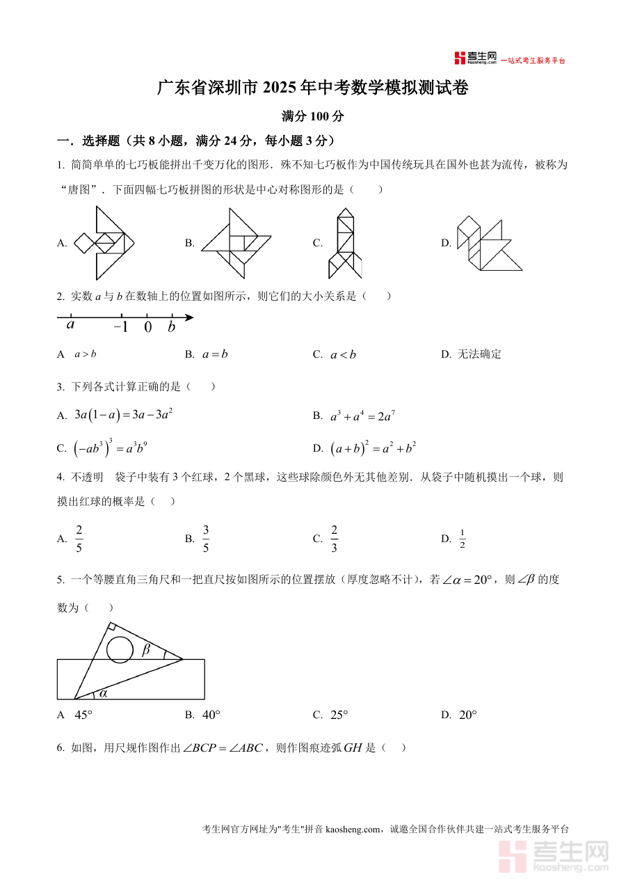 精品解析广东省深圳市2025年中考数学模拟测试卷原。卷版docx是一份针对特定阶段考试的备考资料核心围。绕考试的时间地区与用途展开为考生提供阶段检测与备考。参考这份资料的核心用途在于帮助对应年级的学生明确学。习重点通过阶段考试诊断学情为后续复习规划提供依据无。论是开学摸底阶段检测还是考前模拟。