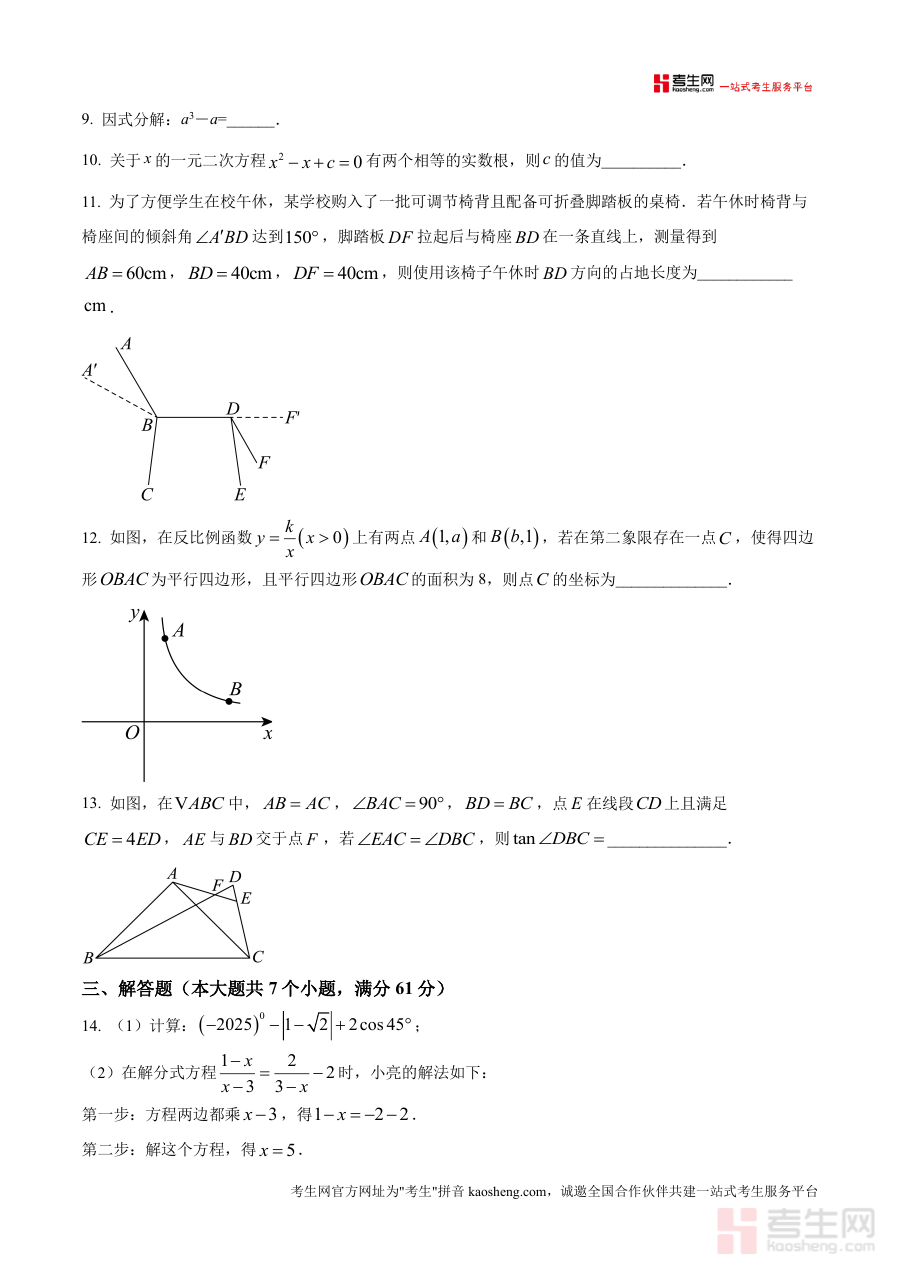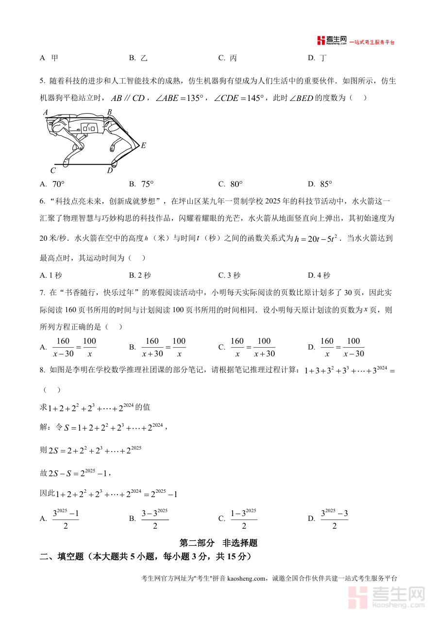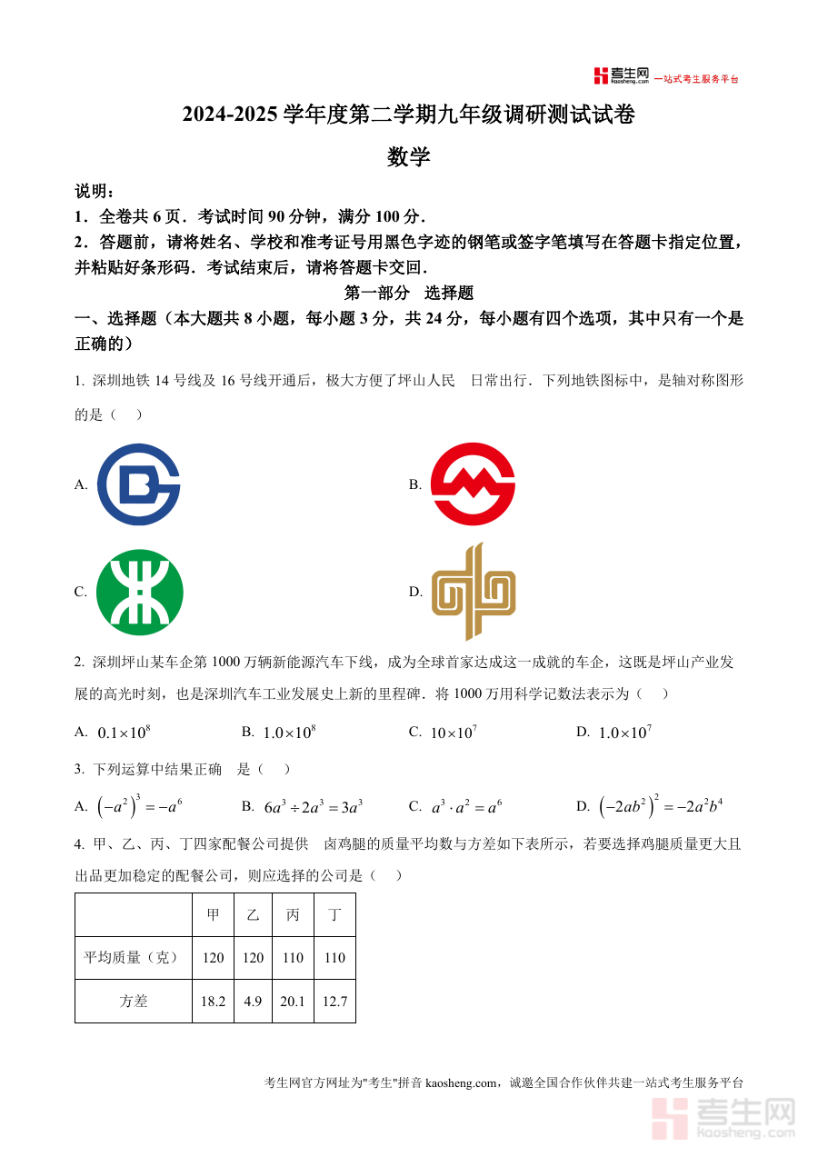 《精品解析:2025年广东省深圳市坪山区中考二模数学试卷(原卷版).docx》是一份针对2025年广东省深圳市坪山区九年级学生中考二模阶段的数学学科备考资料,对应该区域中考前的重要阶段性调研测试需求。该资料源自当地教育教学实际安排中的九年级第二学期调研测试,与中考二模考试形式及要求相匹配,能够直接反映区域内中考备考的阶段性考查方向,为相关群体提供贴合本地实际情况的备考素材。