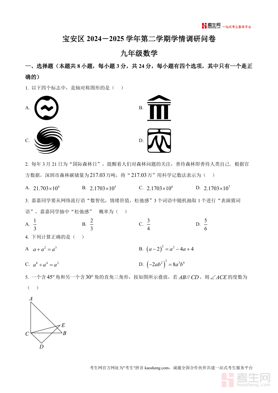 精品解析2025年广东省深圳市宝安九年级中考二模数。学试题原卷版docx是一份针对特定阶段考试的备考资。料核心围绕考试的时间地区与用途展开为考生提供阶段检。测与备考参考这份资料的核心用途在于帮助对应年级的学。生明确学习重点通过阶段考试诊断学情为后续复习规划提。供依据无论是开学摸底阶段检测还是考前。