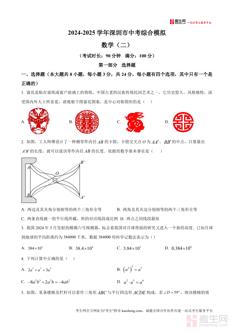 《精品解析:2025年广东省深圳市深汕合作区二模数学试卷(原卷版).docx》是一份针对2025年广东省深圳市深汕合作区中考二模考试设计的数学备考资料。该资料对应2024-2025学年深圳市中考综合模拟数学科目的第二次模拟测试,准确反映该地区中考数学二模考试的基本框架与要求,为相关群体提供贴合本地考试实际情况的标准化练习载体,助力使用者提前熟悉本地中考二模的考试语境与形式规范。
