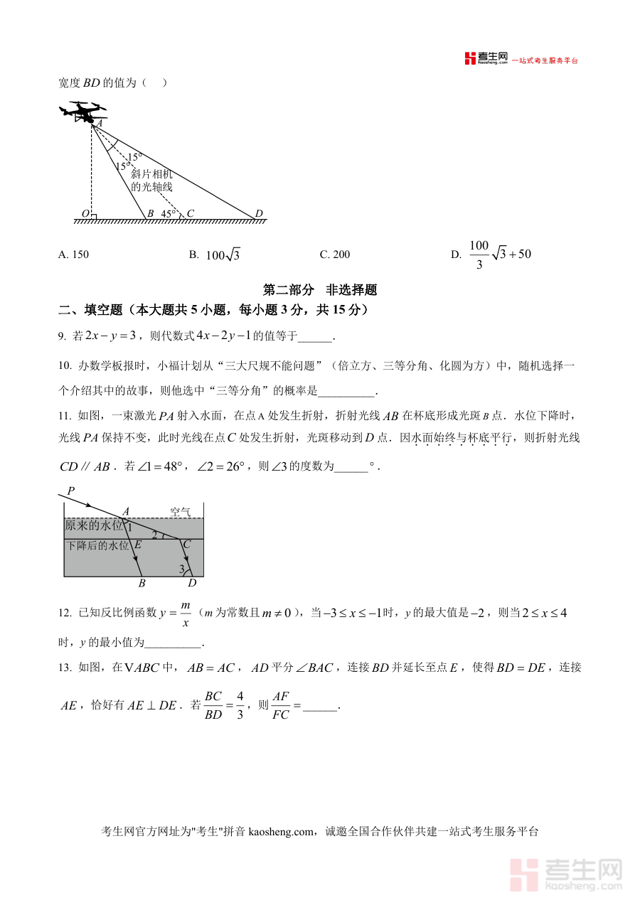 这份资料作为中考二模原卷版资料,可用于九年级学生了解该区域中考适应性考试中数学学科的试卷结构框架、题型设置整体布局及考试过程中的答题要求等信息,辅助学生进行针对性备考规划与阶段复习效果检测。同时也可为数学学科备考辅导人员提供该区域中考二模考试的实际试卷样例,帮助其更精准把握考试方向,指导学生开展有效备考工作。