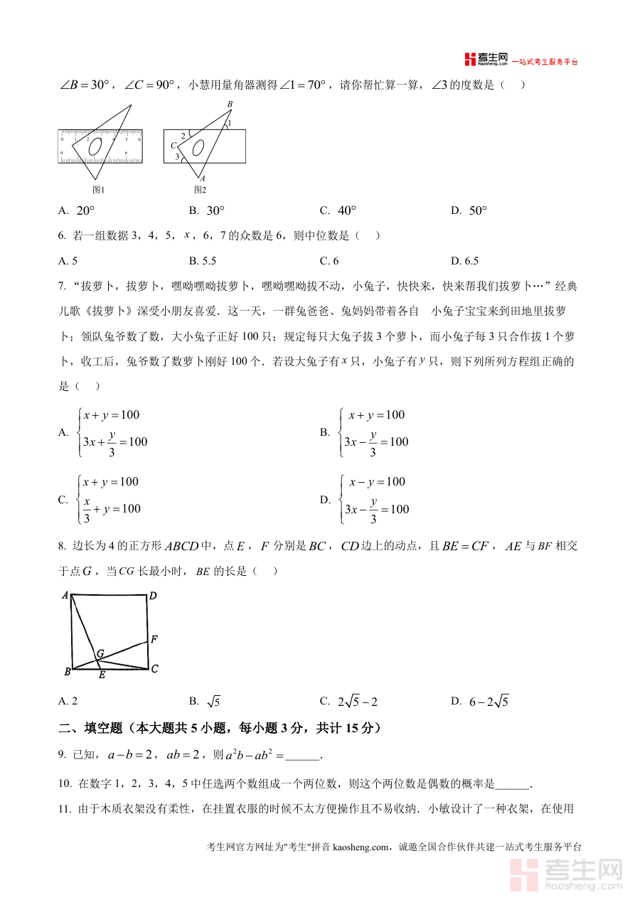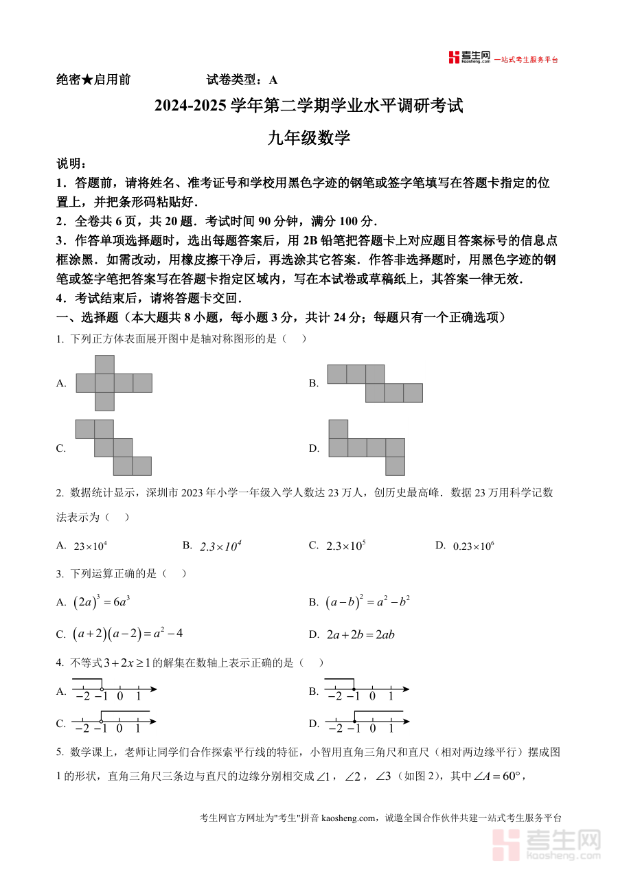 《精品解析:2025年广东省深圳市罗湖区九年级中考二模数学试题 -(原卷版)》是一份针对2024-2025学年第二学期广东省深圳市罗湖区九年级学业水平调研考试(中考二模)的数学学科备考资料。该资料对应2025年中考备考周期,由罗湖区组织实施的阶段性检测考试,是当地九年级学生中考备考过程中的重要环节,能够反映该阶段区域内数学学科教学及学生学习的整体情况。